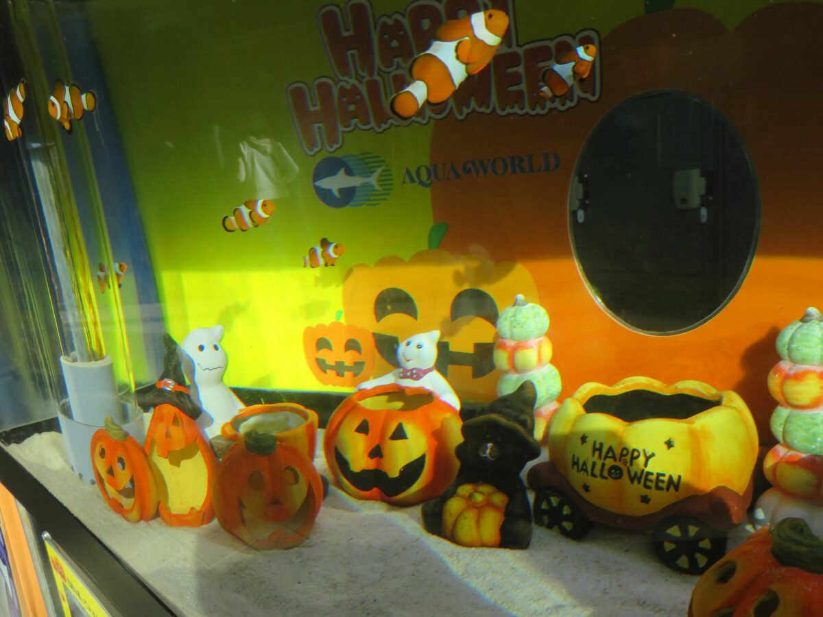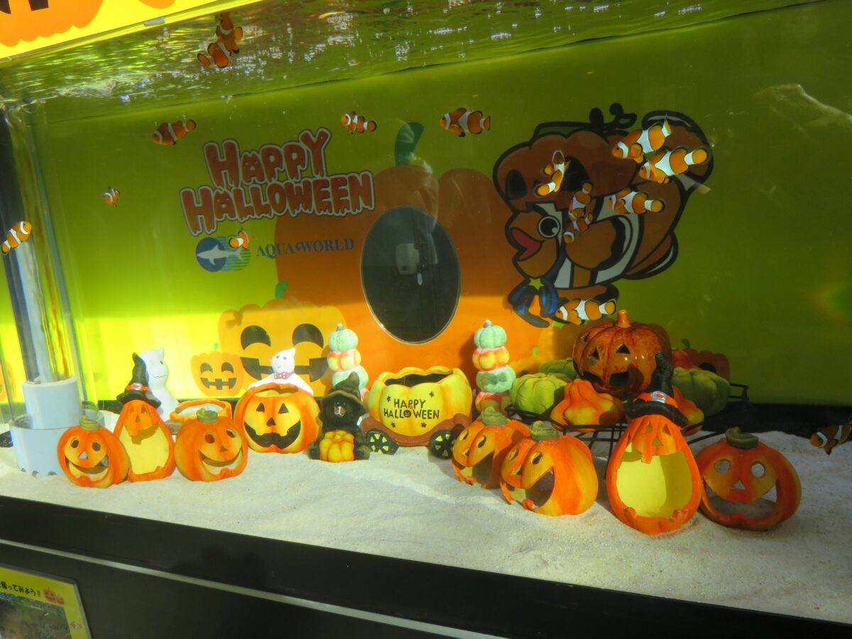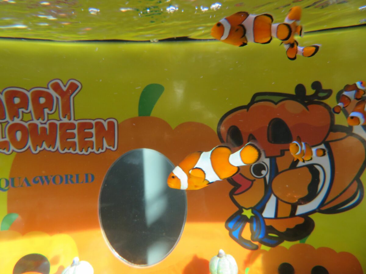 大洗のアクアワールドのハロウィンバージョンのカクレクマノミの水槽