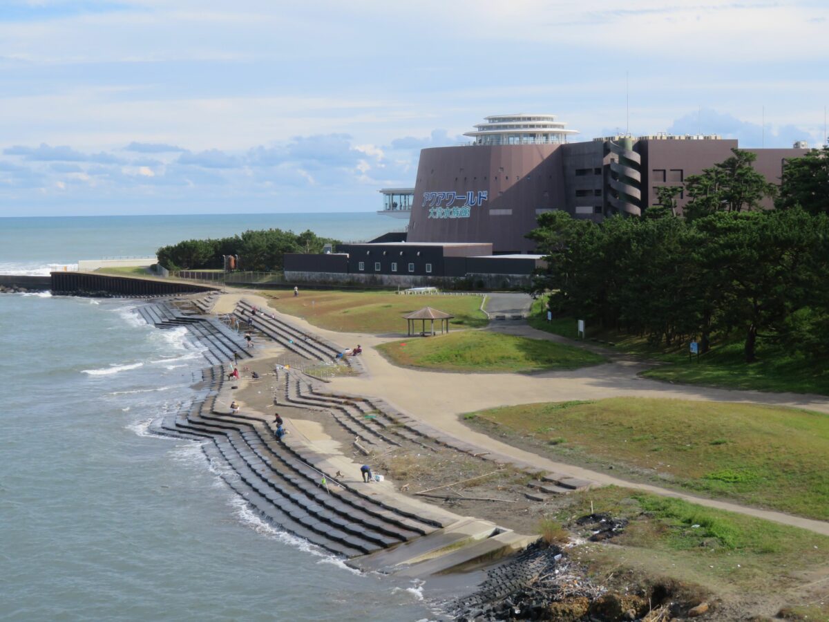 アクアワールド茨城県大洗水族館は鹿島灘に面する大洗海岸の北端にあります。館内の65の水槽では、約580種68,000点の水に生きる生物が展示されています。