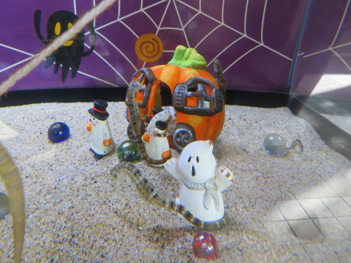大洗のアクアワールドのハロウィンバージョンのポットベリーシーホースの水槽