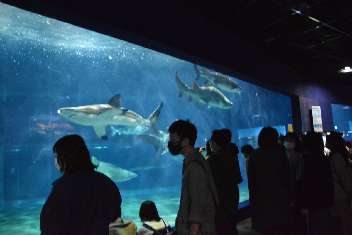 アクアワールドには数多くの生物が飼育されていますが、サメの種類は50種を超え日本一を誇っています。マンボウの水槽も日本一の大きさをもち、中ではマンボウがゆっくりと泳いでいます。