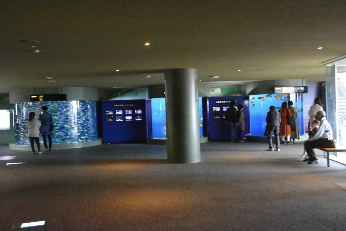 水槽が並ぶ展示室の上は、展望タワーとなっており、鹿島灘の眺望を楽しむことができます。