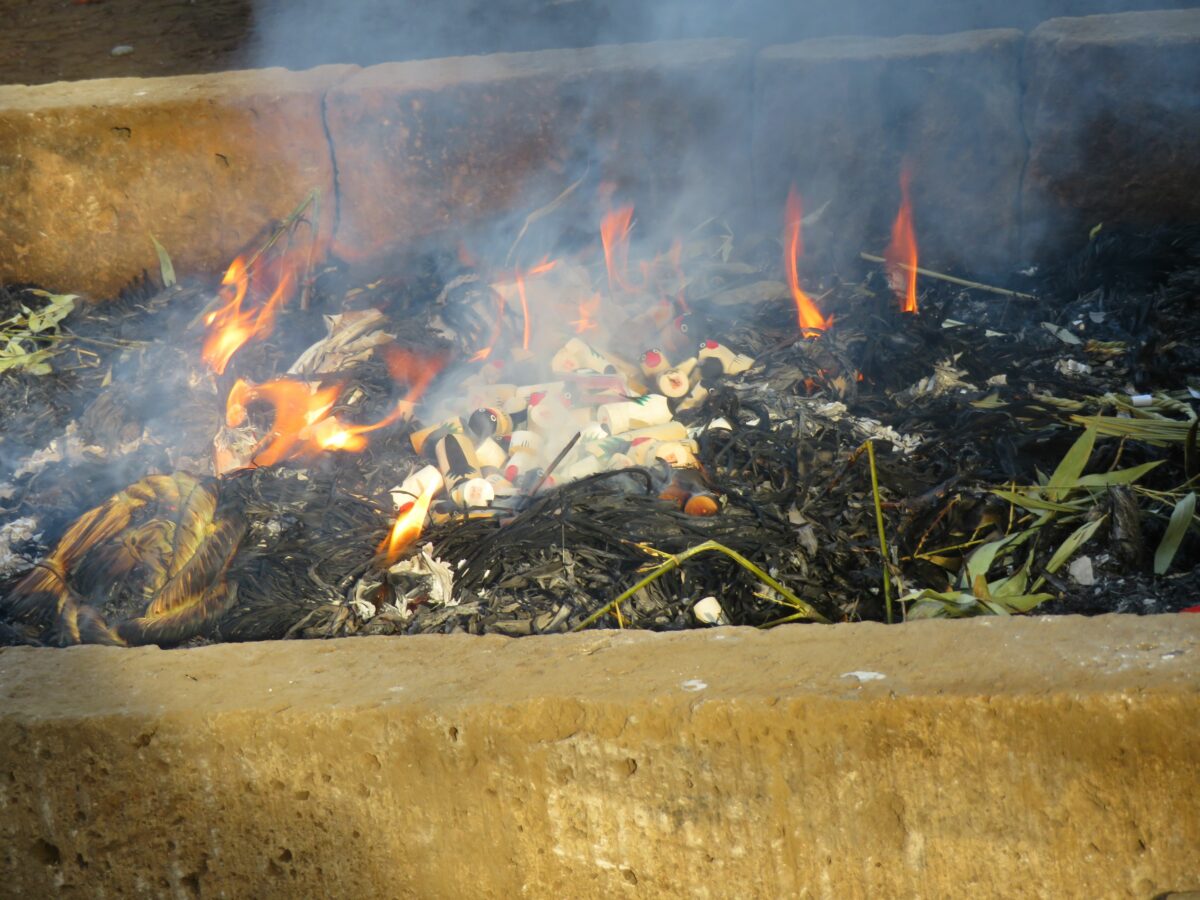 火が点される焚き上げ場
