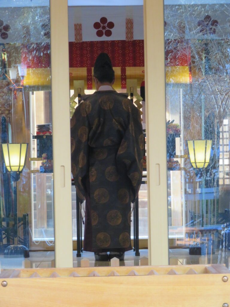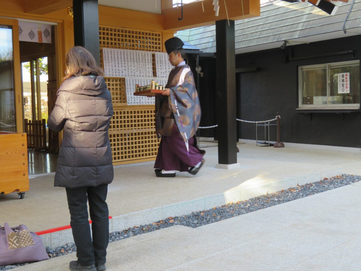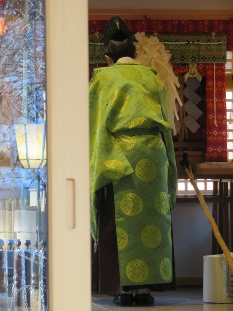 お祓いを行うために本殿に入る神主