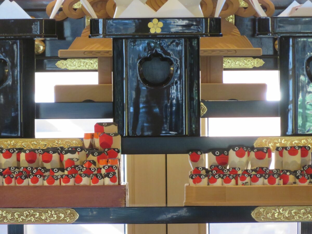 本殿中央の神棚に運ばれた木彫りの鷽