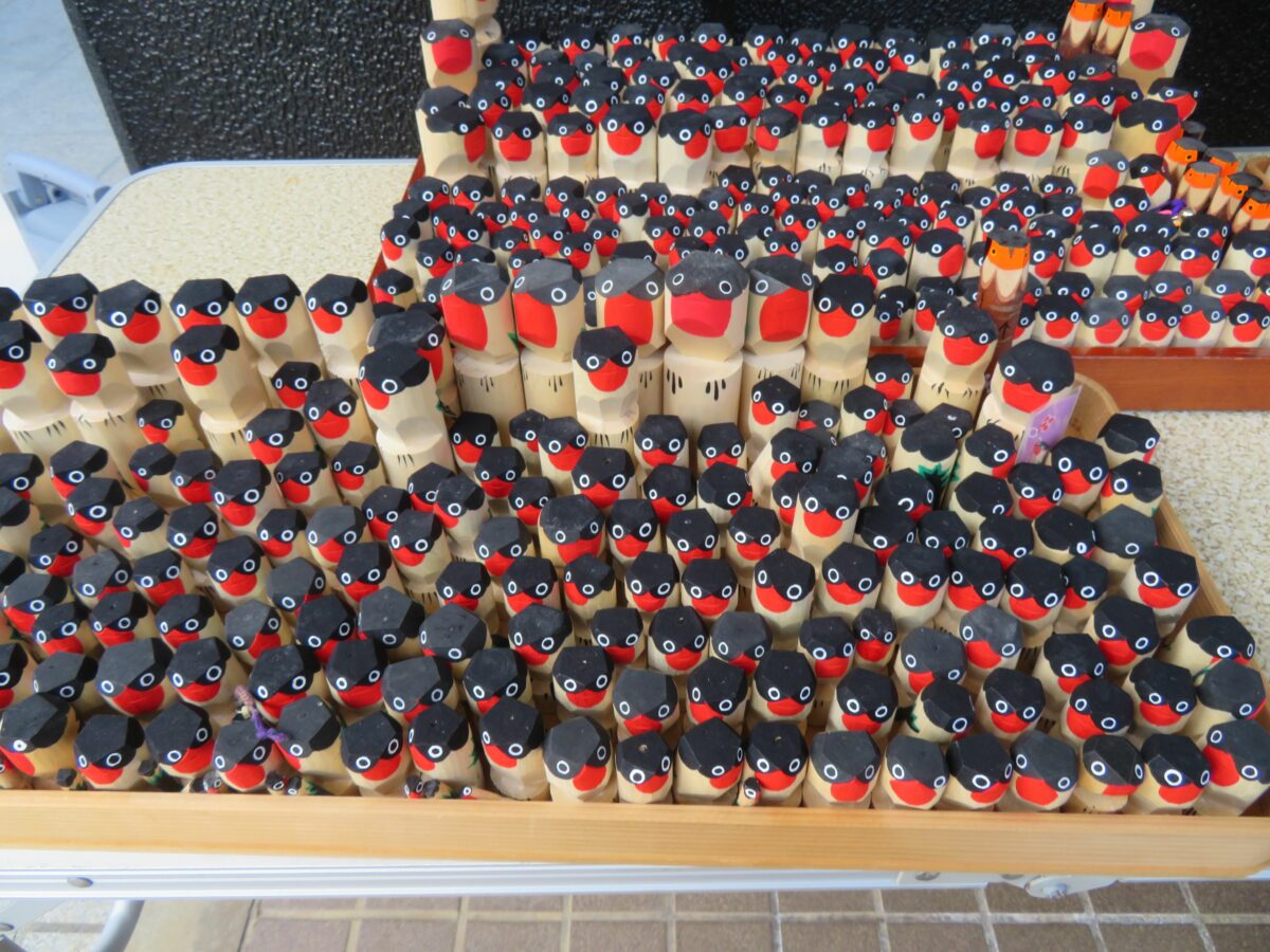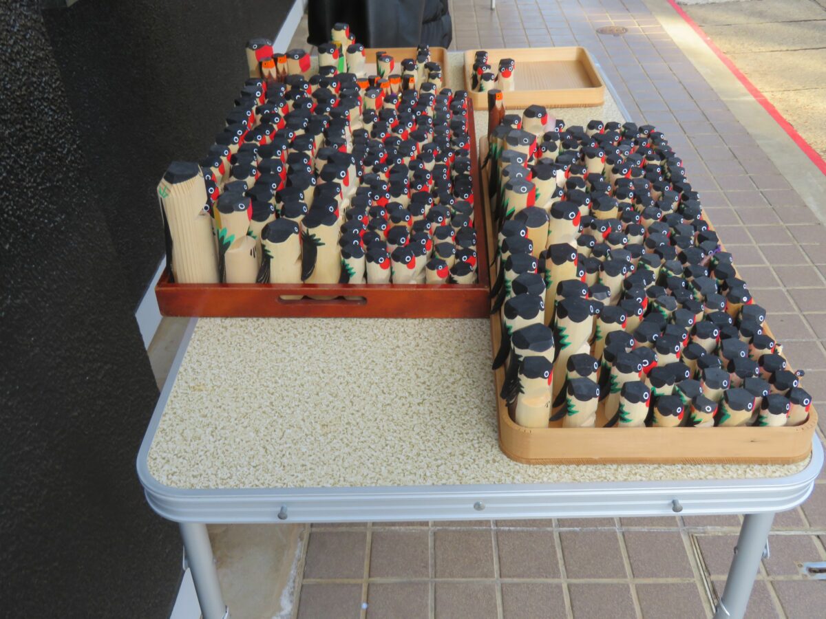 本殿東の授与所で交換する木彫りの鷽