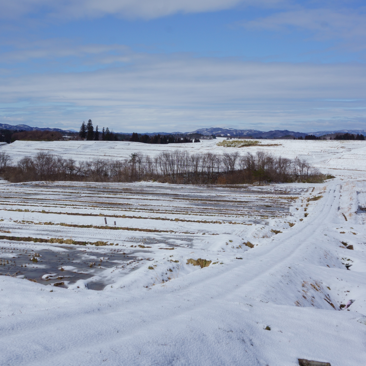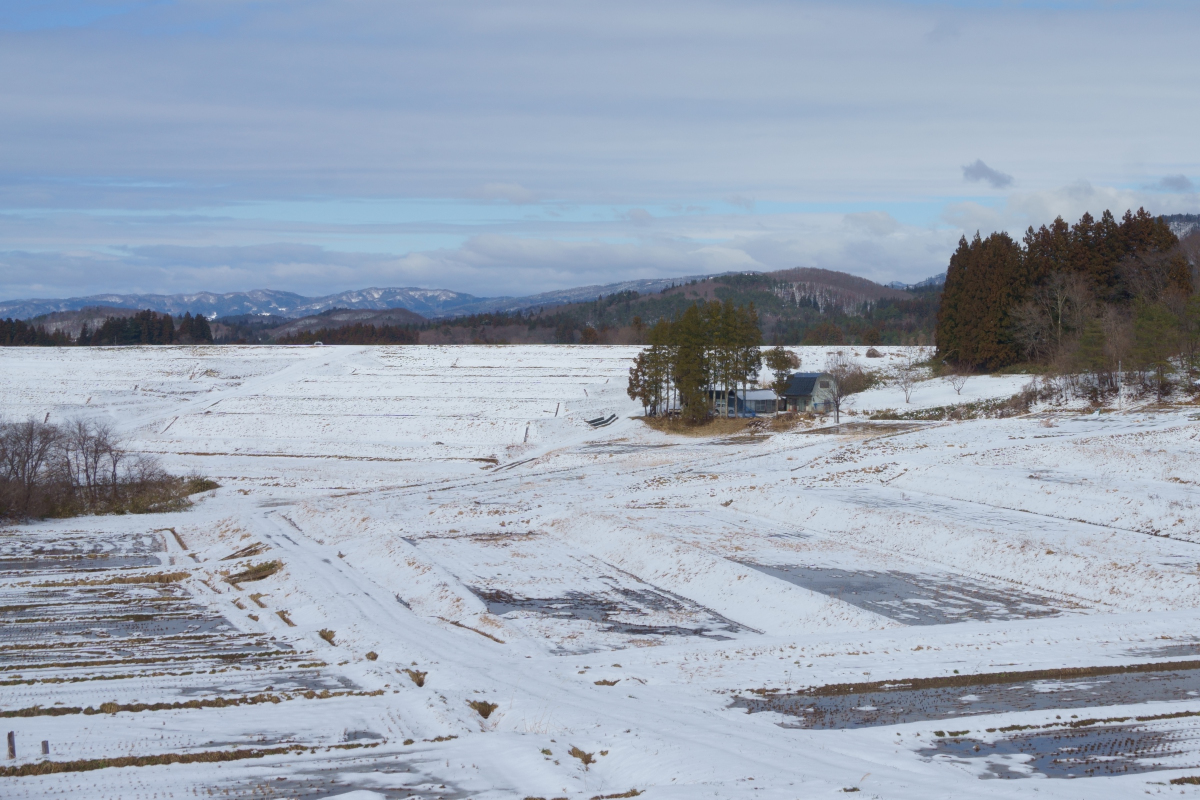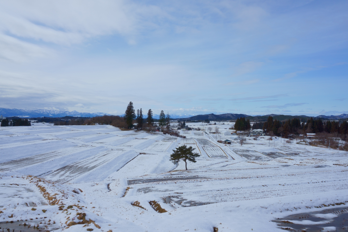 離れた場所にあるダムからの取水管を整備し、斜面にはたくさんの棚田が造られ、県内有数の米どころになりました。その雪景色は、この時期にしか見られない絶景です。