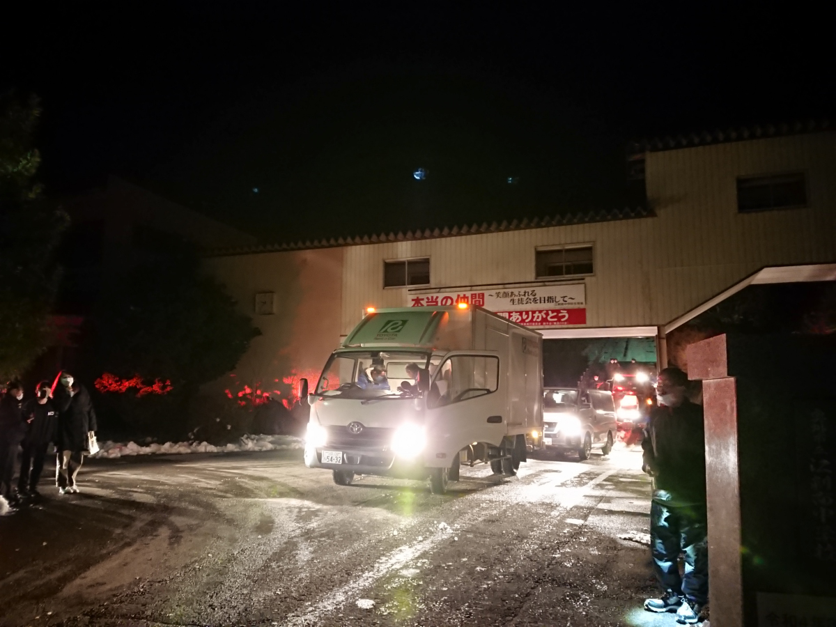 最後は、花火の打ち上げを担当された小松煙火工業さんの退場を、全員で見送ります。
