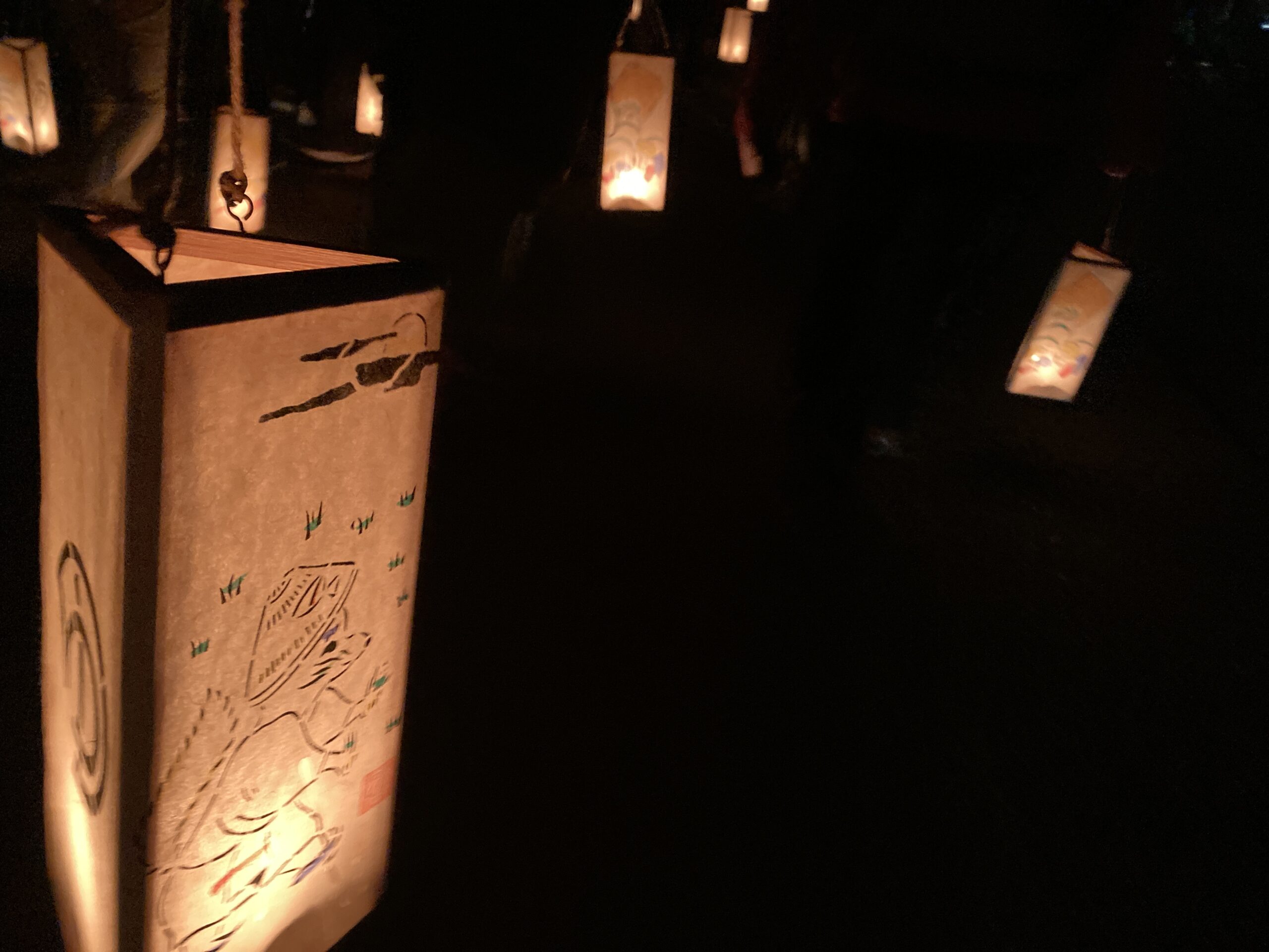 次第にあたりが薄暗くなってくると、提灯の光だけが浮かび上がり、さらに幻想的な風景となります。