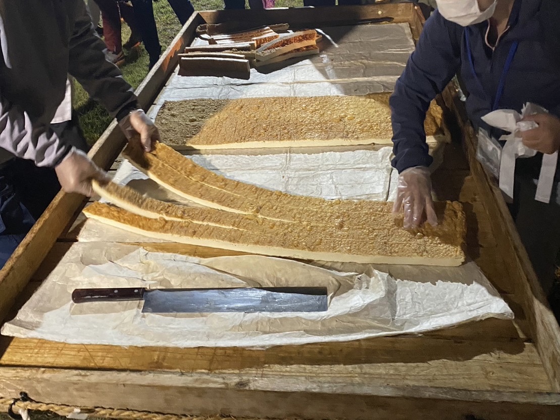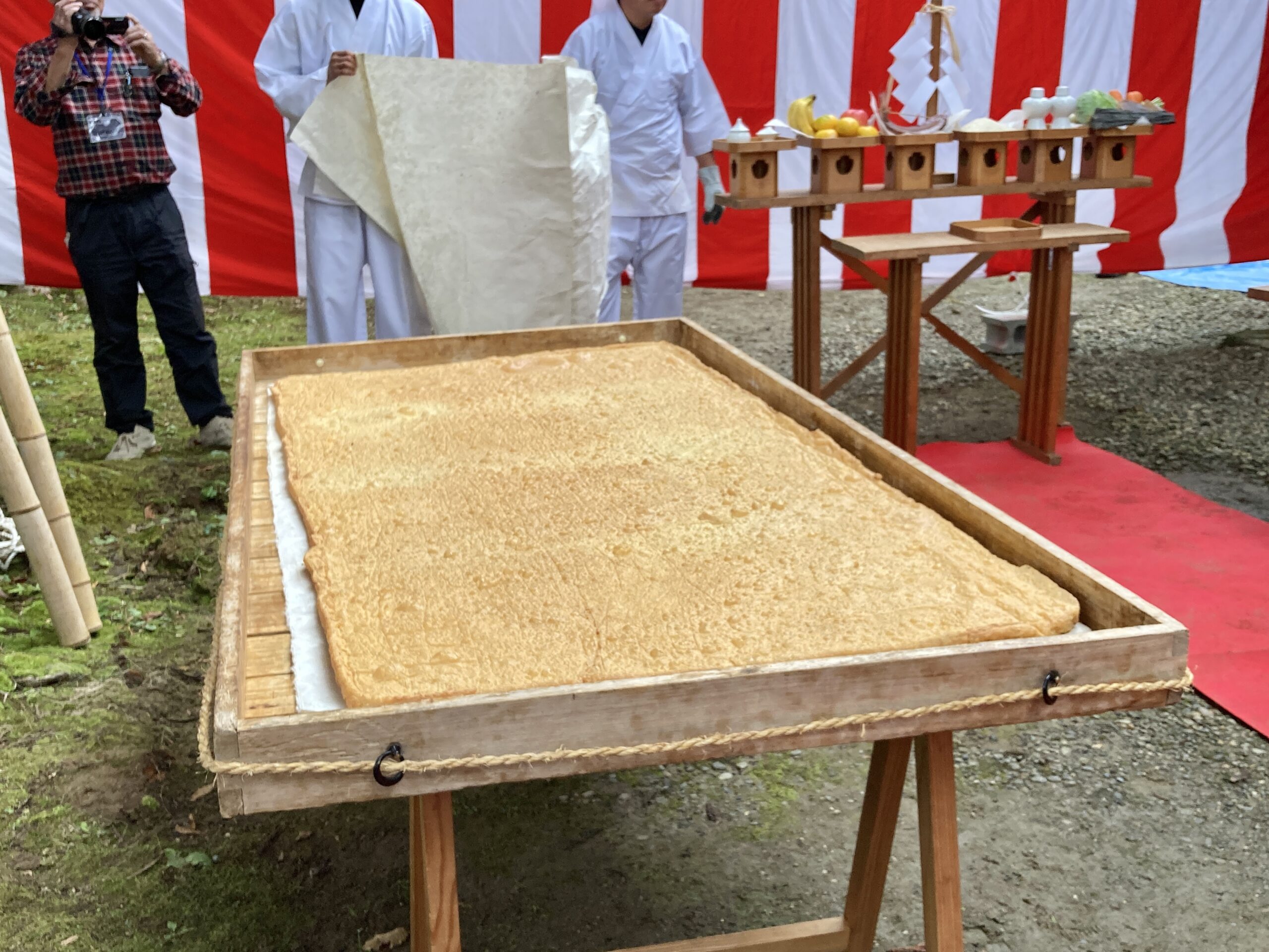 内容盛りだくさんの催しで楽しんだ後は、いよいよメインイベントのひとつでもある、畳一枚の大油揚げづくりが始まりました。