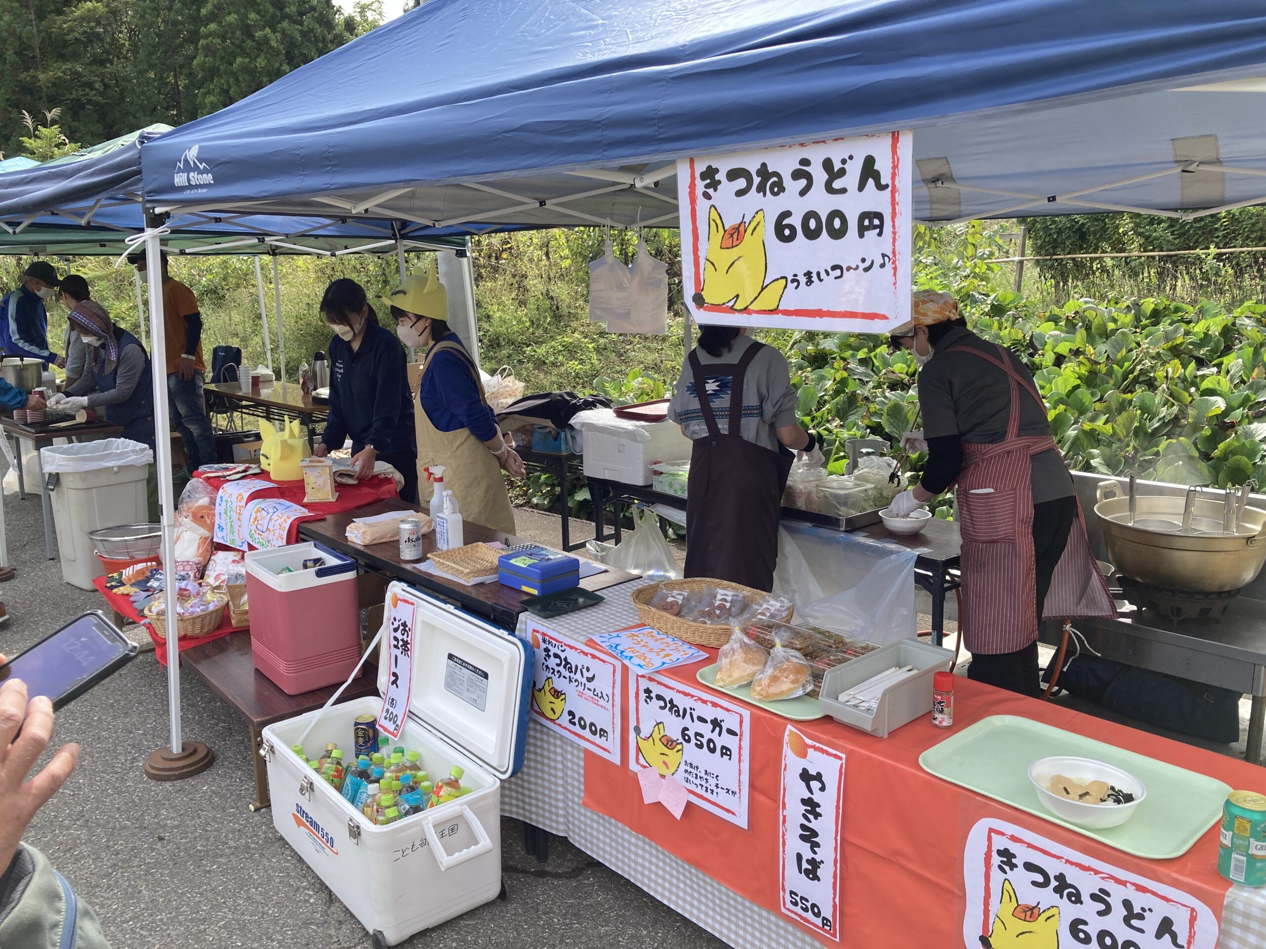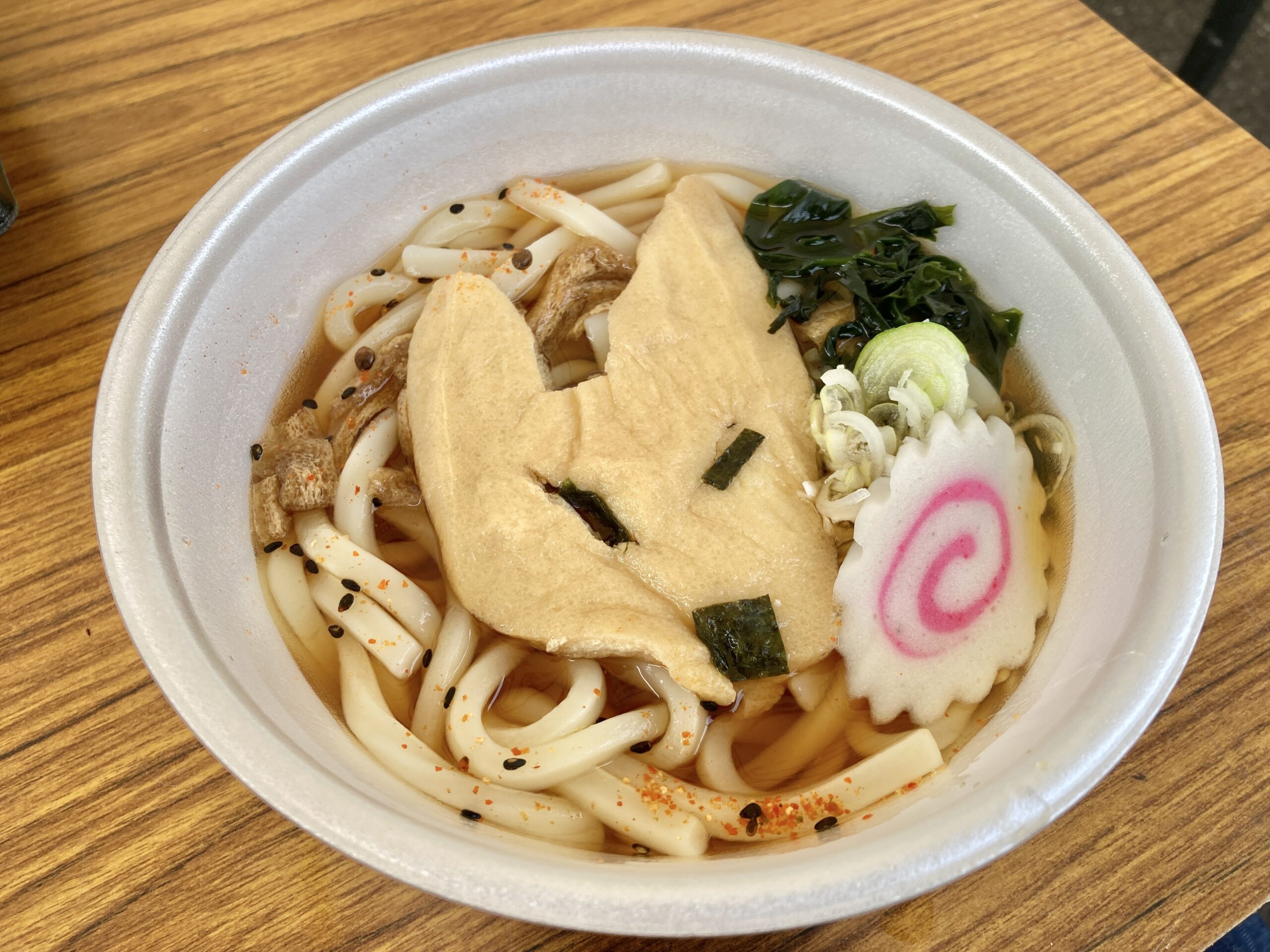 狐の好物といえばやっぱり油揚げ!炭火でこんがりと焼き目を付けた油揚げは香ばしくてたまりません! きつねうどんのお揚げも可愛い狐の顔に。きつねだらけの出店ブースは目でも舌でも楽しめます。