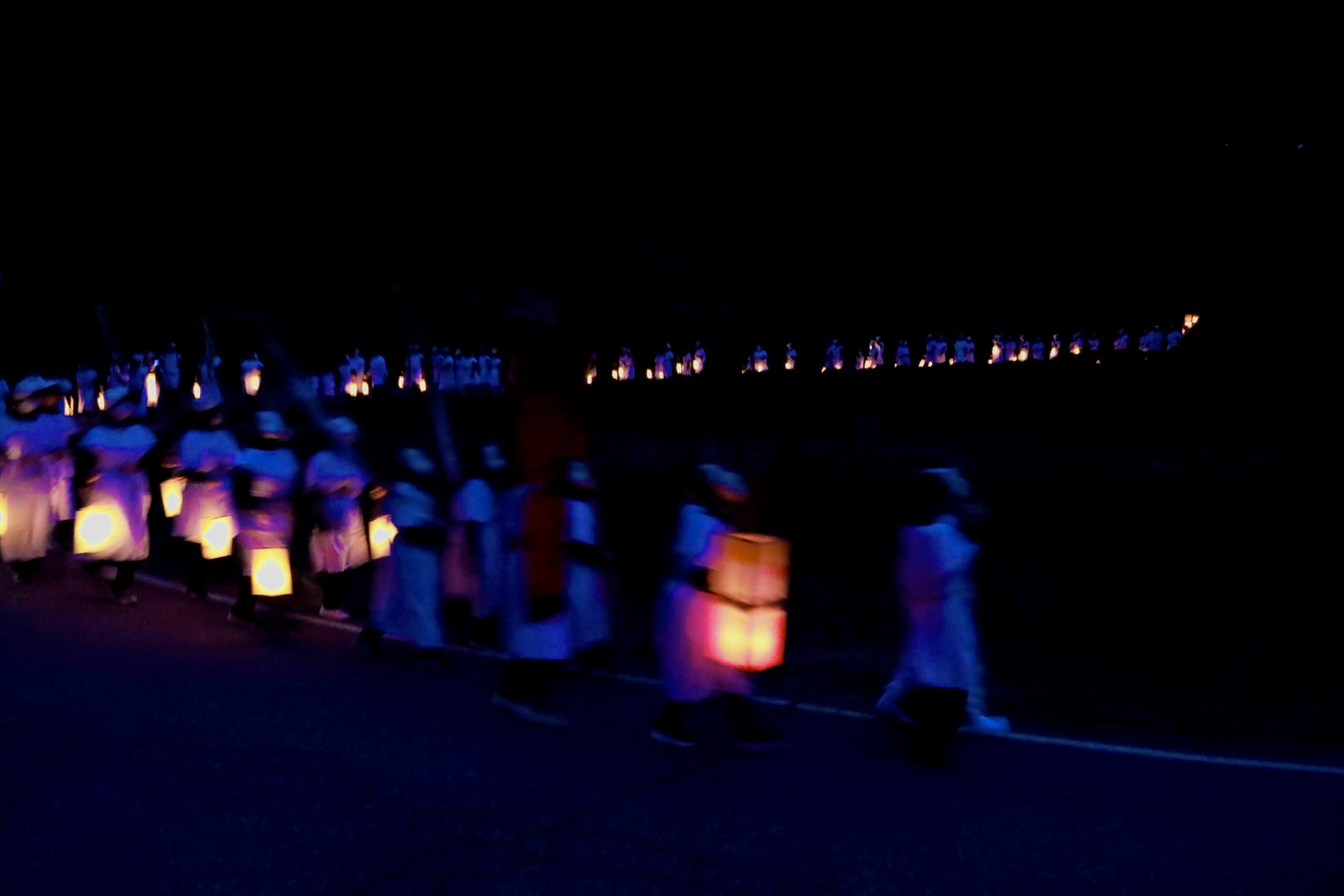 暗闇に包まれると、人の姿が見えなくなり、ゆらゆらと提灯だけが浮かぶ姿は、まるで狐火のようです。