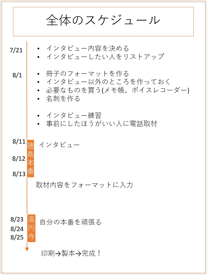- 当日話が聞けなそうな人には電話インタビューをしておく