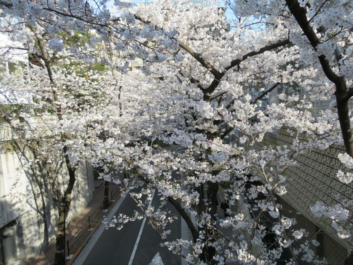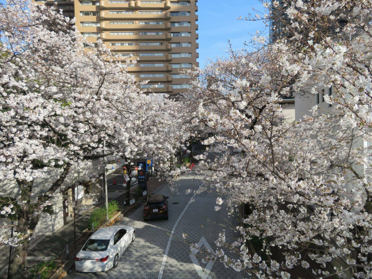アーク・ガーデン内には見事な枝ぶりの桜が育っていますが、公園の周辺も見逃すことはできないでしょう。特に公園の北の連絡橋からは眼下に桜並木が繋がります。