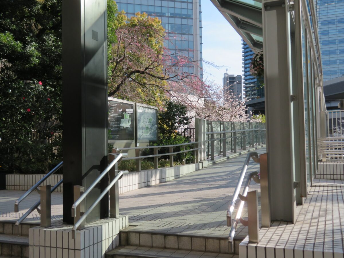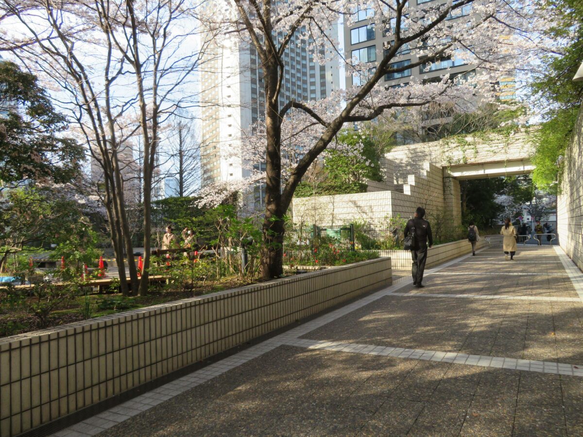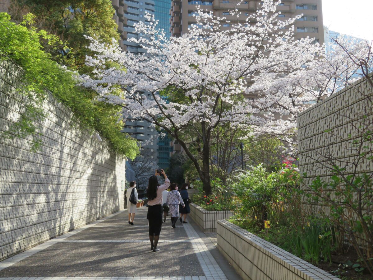 アークヒルズではアーク・ガーデンの内外に季節の彩りをつける桜が植樹されていますが、カラヤン広場から南のアークヒルズ・サウスタワーへの通路でも桜の花を観賞することができます。