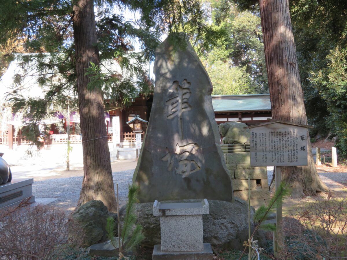 「天神様のなで牛」の他にも境内には、筆塚や菅神廟碑が設けられ、菅原道真が学問の神様であることを再認識することができます。
