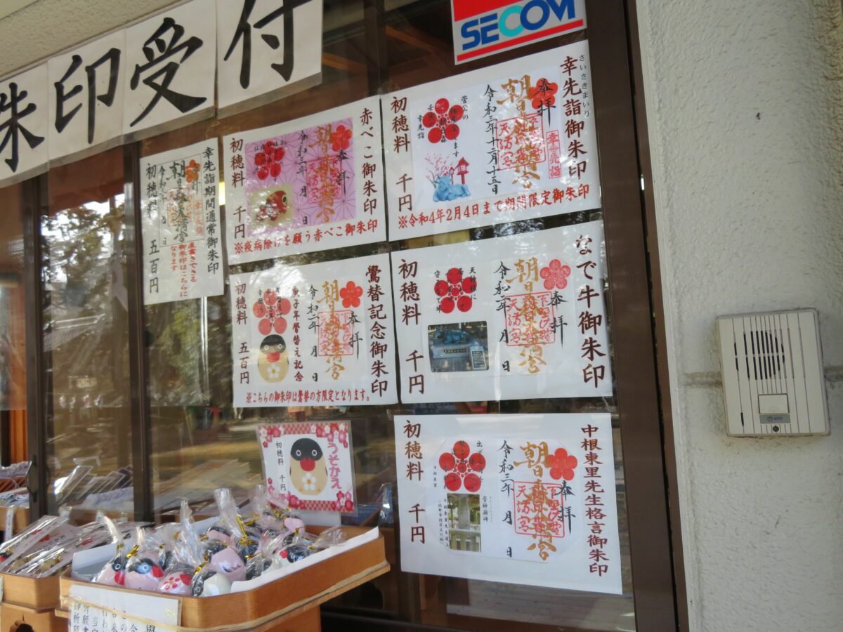 社務所で頂ける御朱印には、通常の御朱印や赤べこが描かれたものなど種類豊富です。