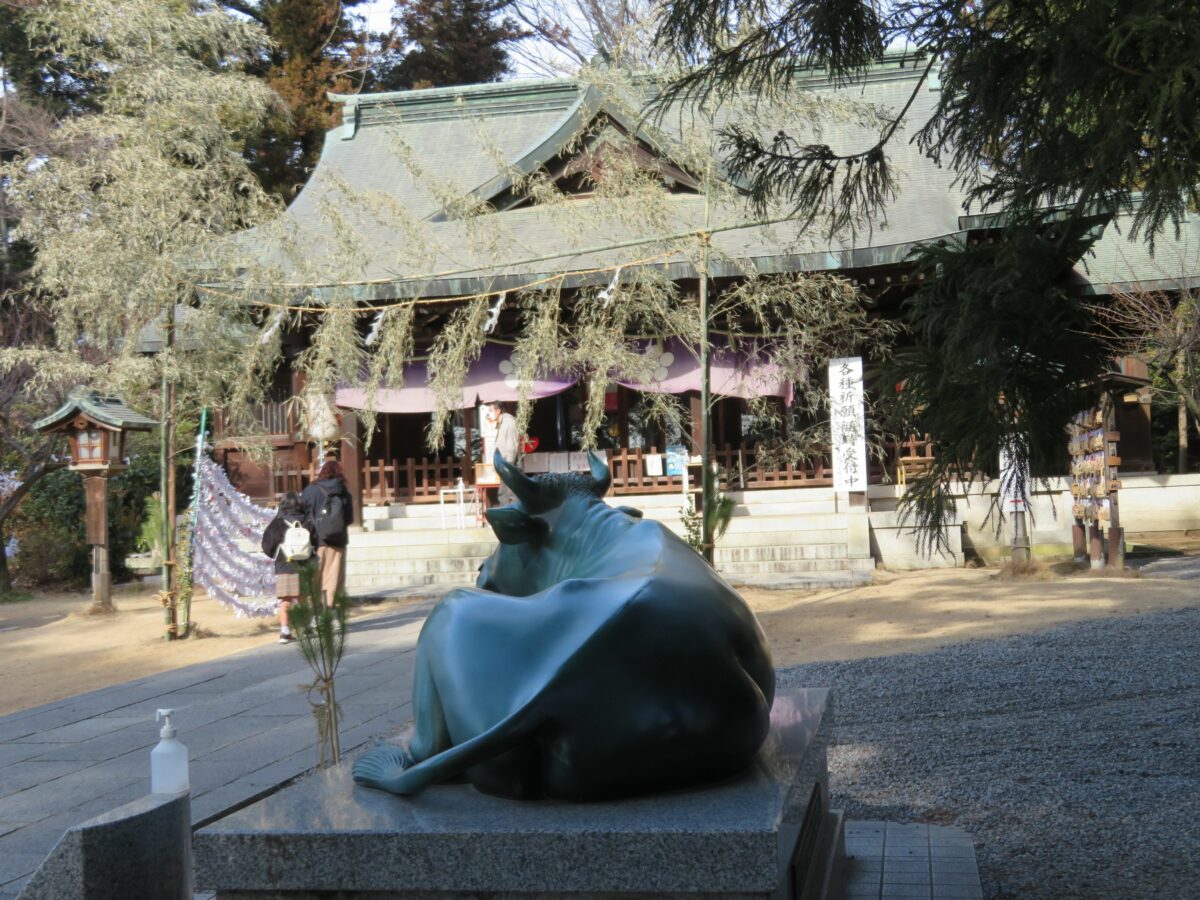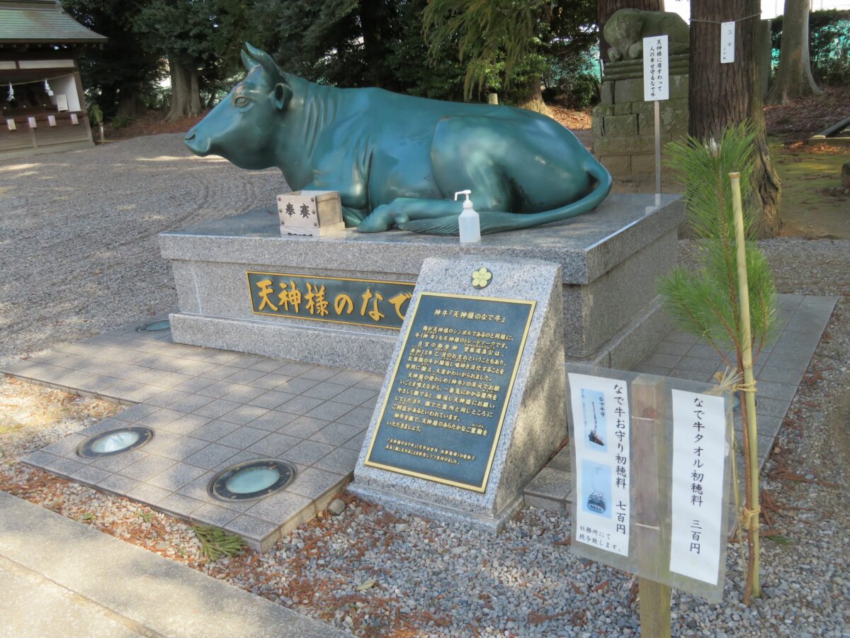 拝殿前の「天神様のなで牛」