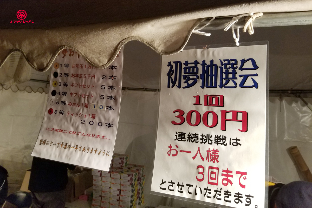 とは言っても花火が当たり前にある浅川町なので、一番人気はやはり初夢お年玉大抽選会。1回300円で連続3回まで行う事ができます。1等は10,000円が当たるので、特に子供達はお年玉を増やそうとついつい財布の紐が緩んでしまいます。