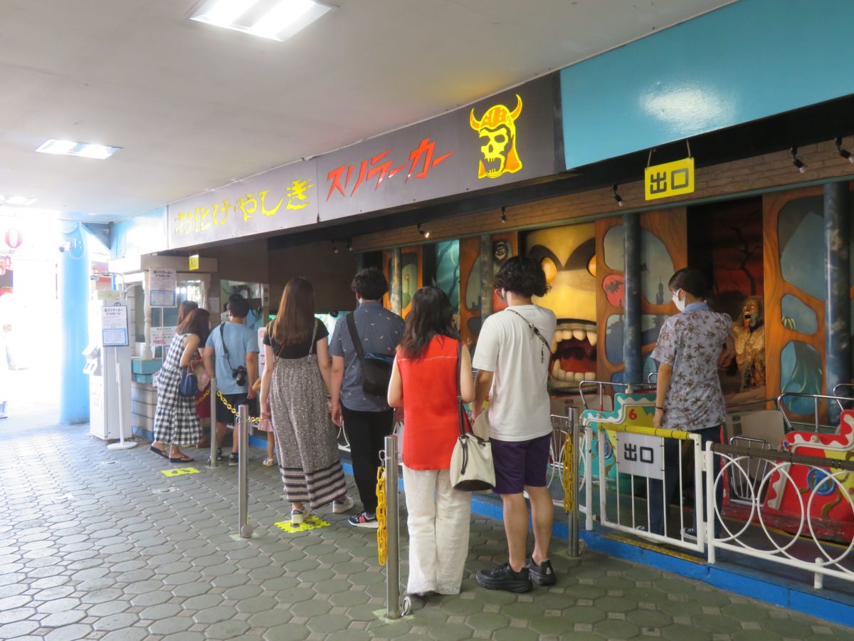 「スリラーカー」では、ワゴンに乗ってお化けやしきに突入します。