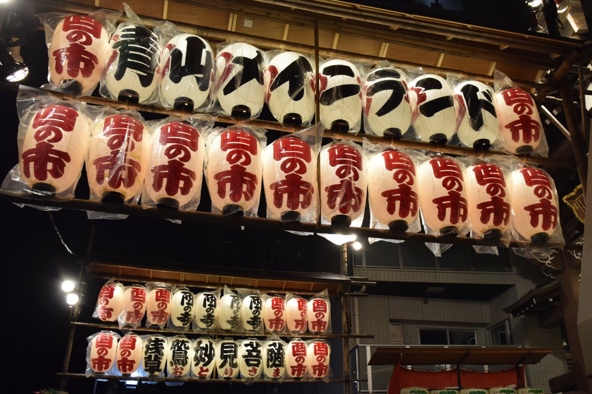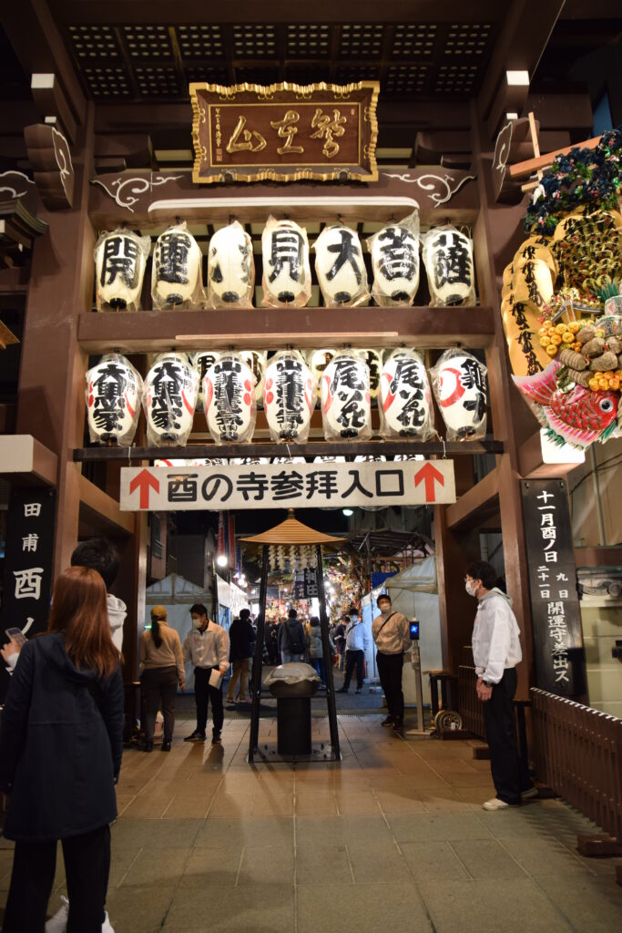 大きな提灯には酉の市のご本尊「鷲妙見尊」の文字が。