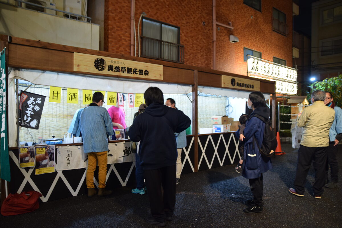 酉の市名物、切山椒のお店はもちろん、はしまき、べったら漬けのお店、おでん・魚介焼き・串焼きのお店、鶏卵にこだわった京都のベビーカステラのお店、大たこ焼きなどなど。