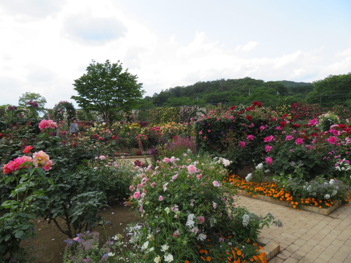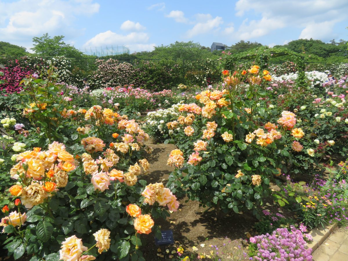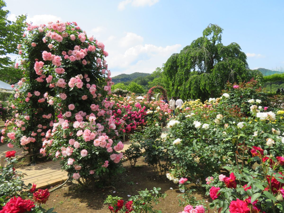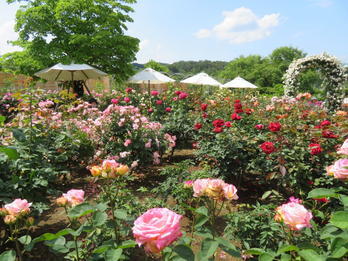 ローズガーデンの園内は見渡す限りのバラの花です。全身がバラの花に埋もれます。小さな子どもばかりでなく大人もバラの花に隠れてしまいそうです。
