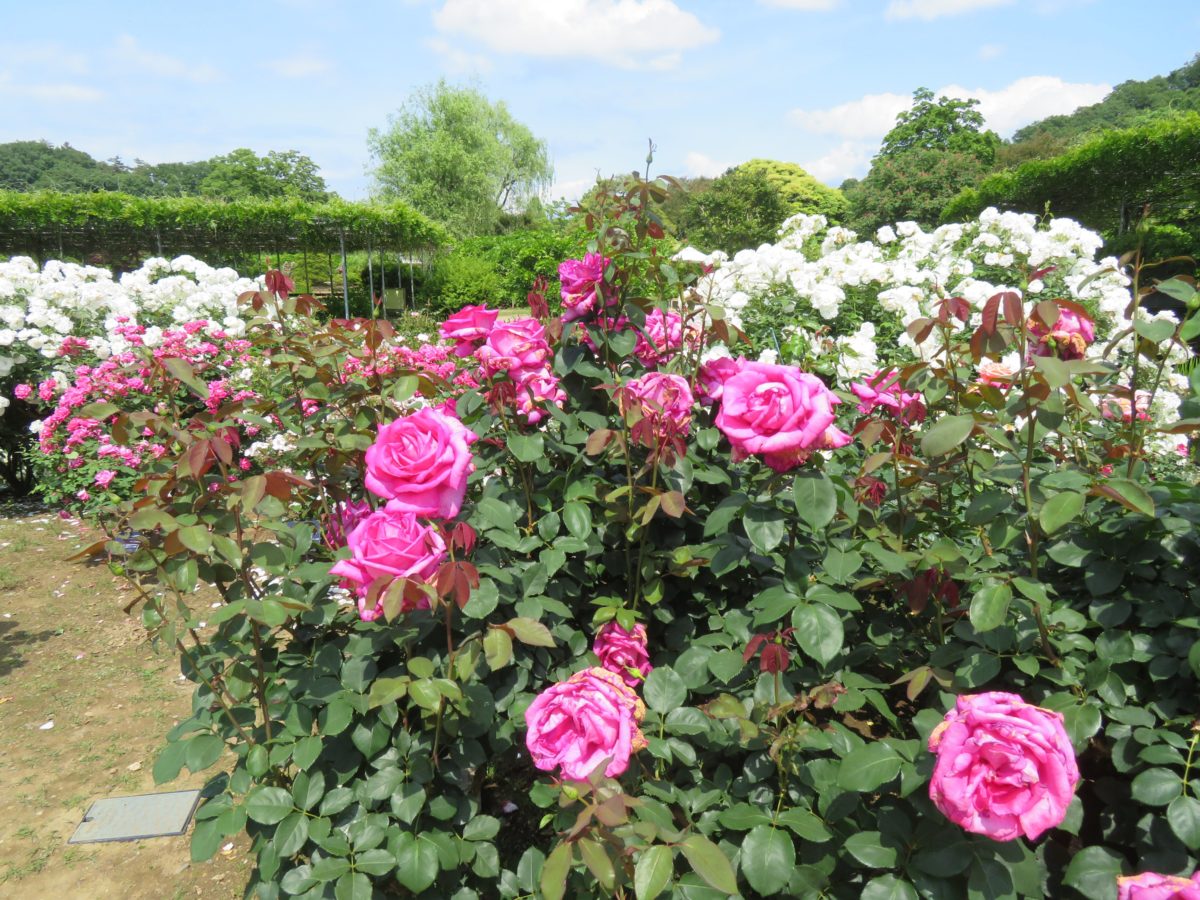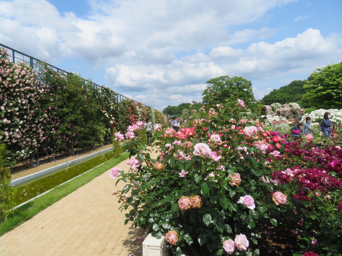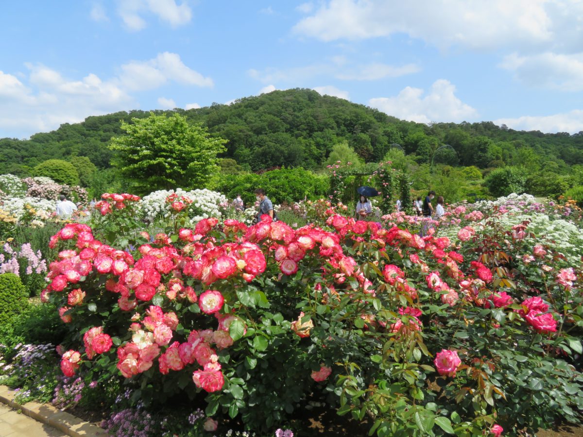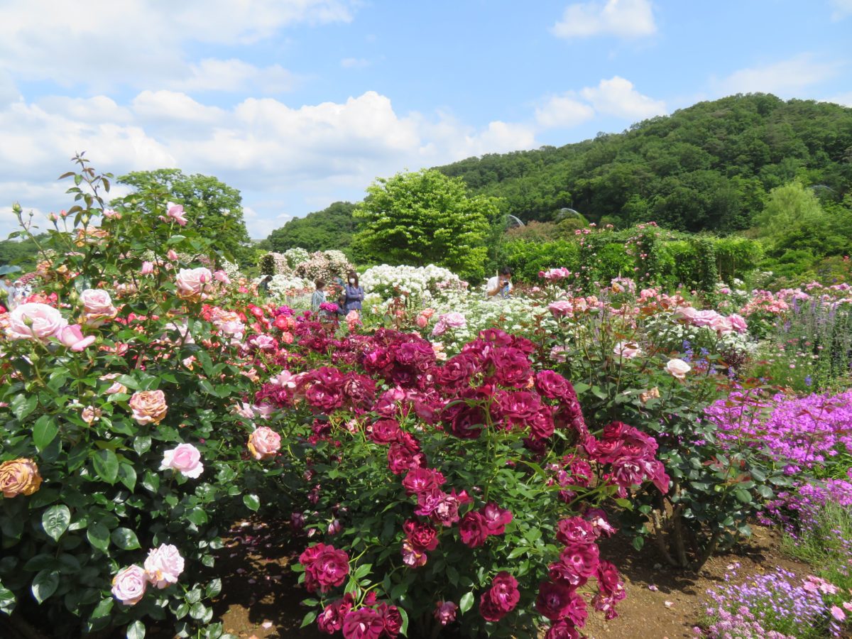 ローズガーデンの園内は見渡す限りのバラの花です。全身がバラの花に埋もれます。小さな子どもばかりでなく大人もバラの花に隠れてしまいそうです。
