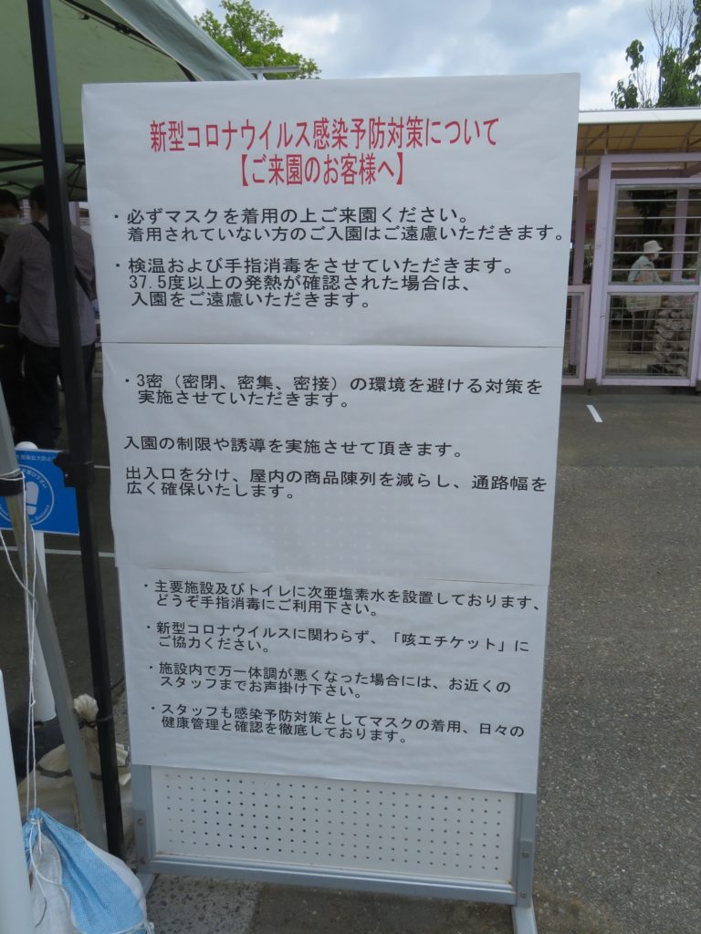 正面ゲートに設置された新型コロナウイルス予防のための掲示
