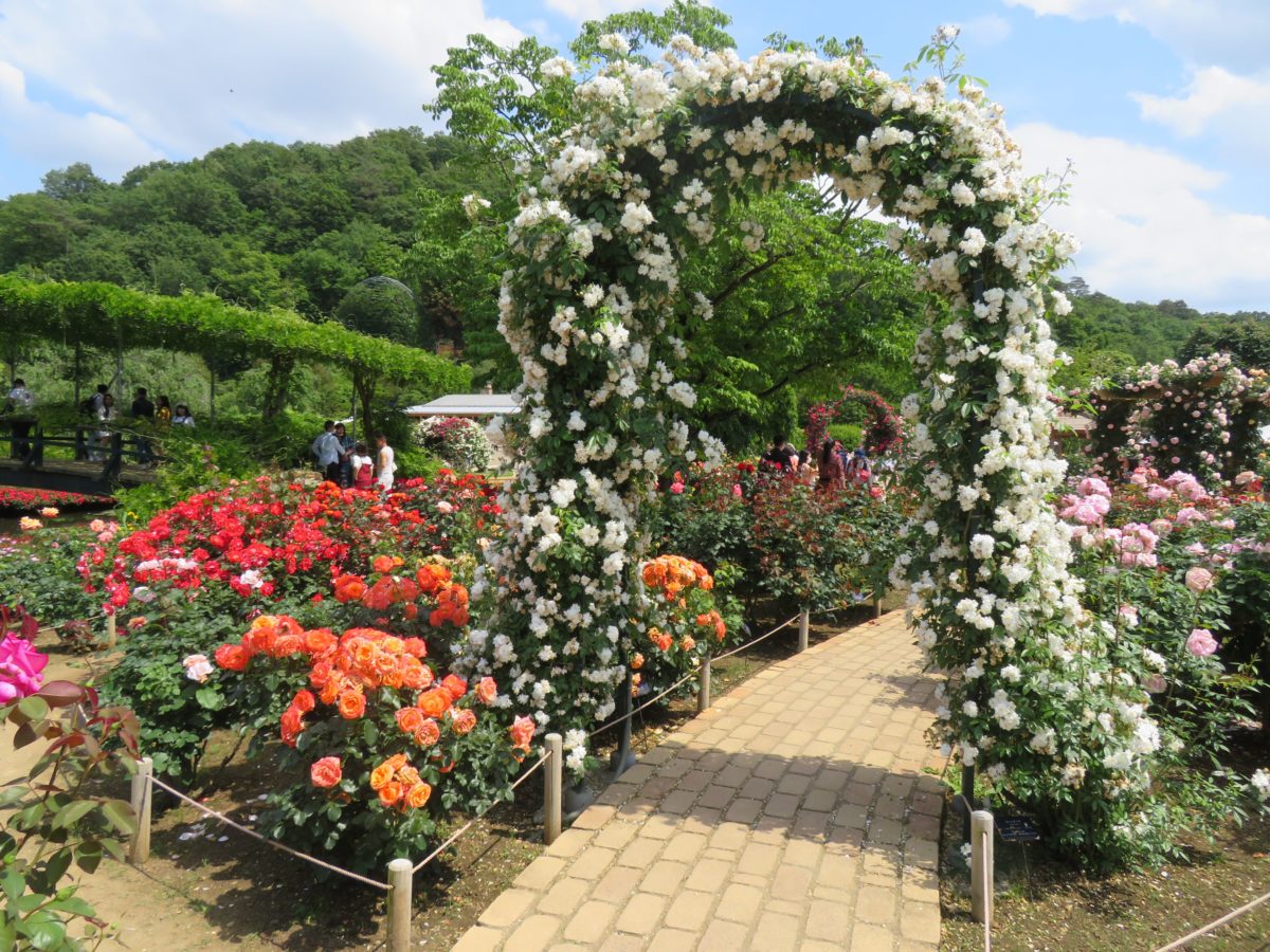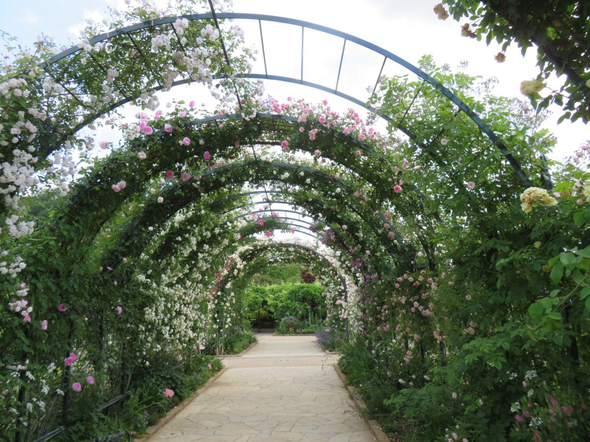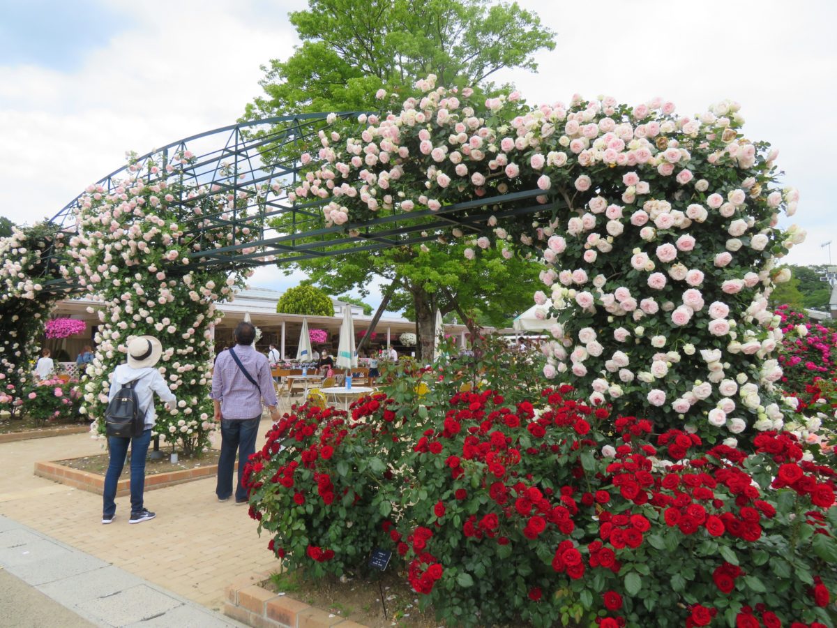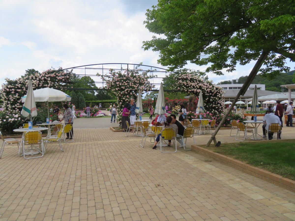 フラワーステージからフードテラスを右に見ながら北西に進むとローズガーデンです。ローズガーデンの東にはバラの花がドームやアーチを描き、絶好のカメラスポットとなっています。