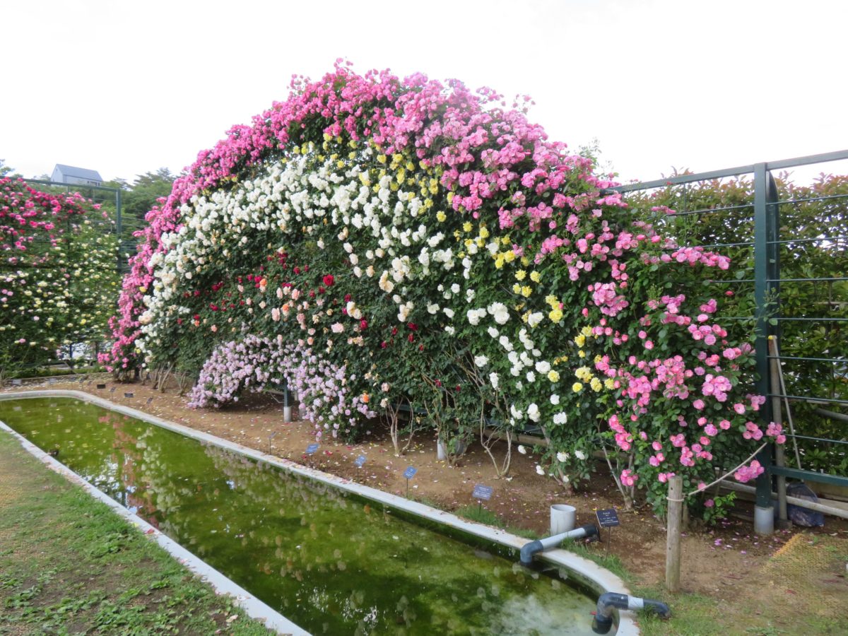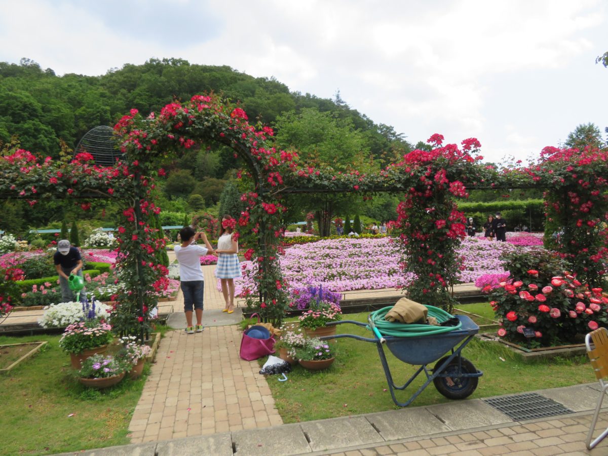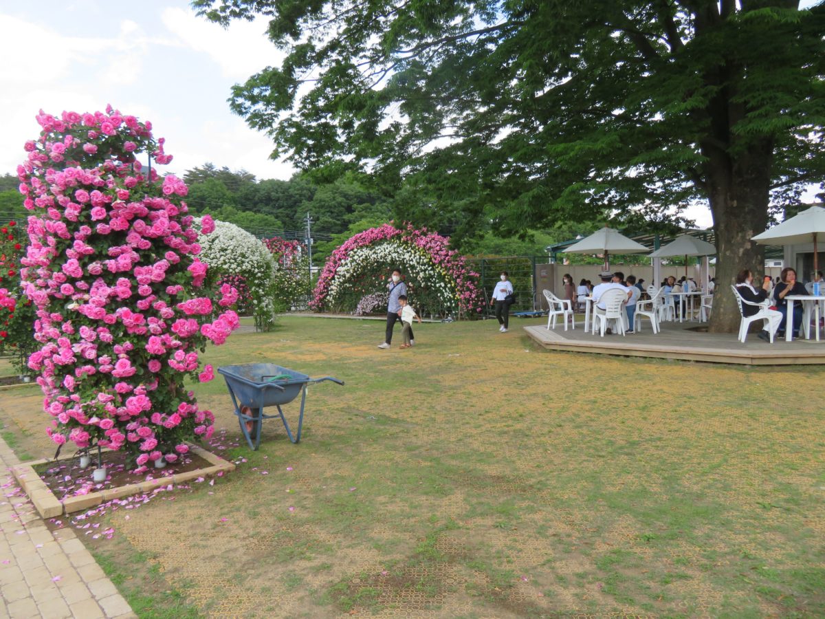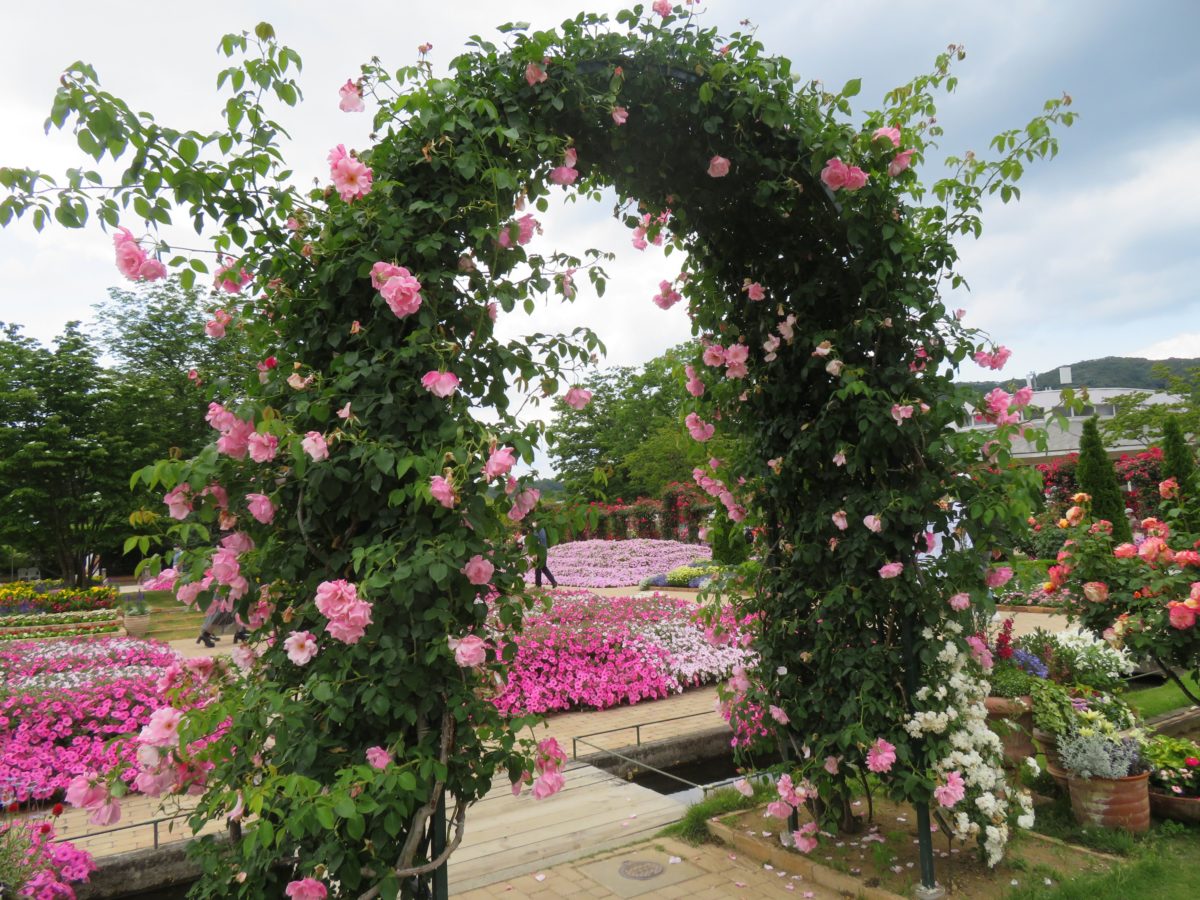 フラワーステージからフードテラスを右に見ながら北西に進むとローズガーデンです。ローズガーデンの東にはバラの花がドームやアーチを描き、絶好のカメラスポットとなっています。