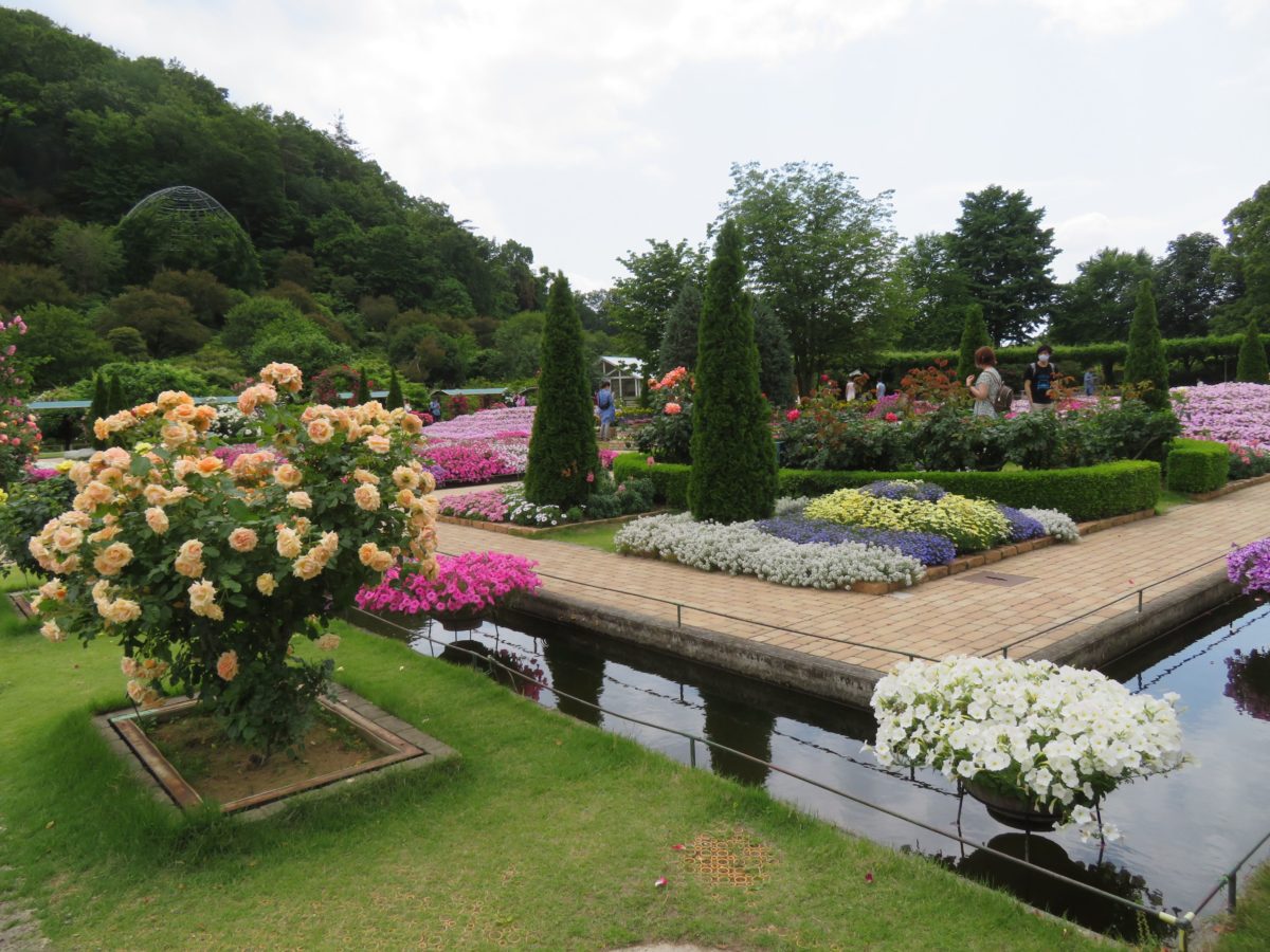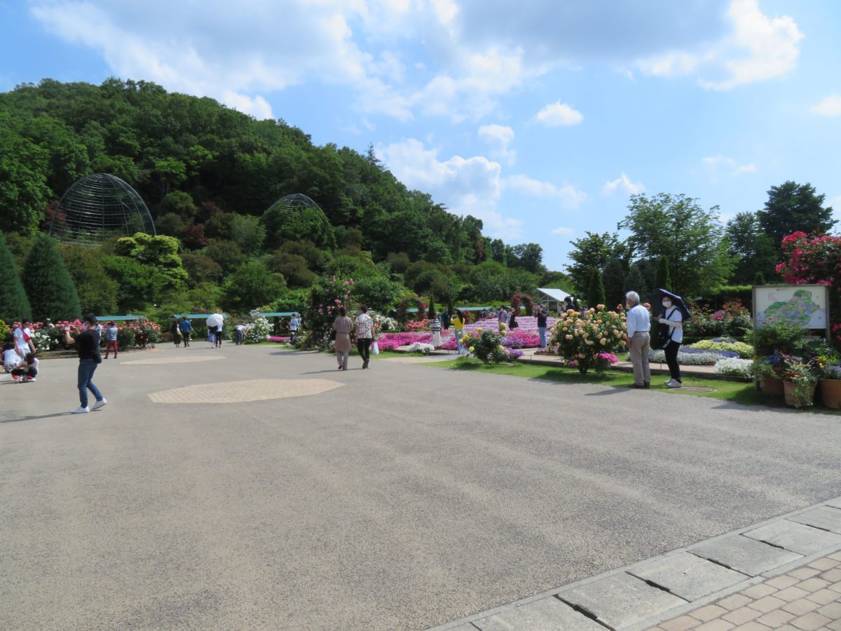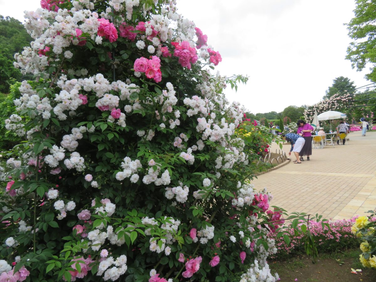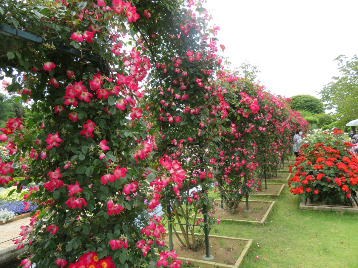 フラワーステージからフードテラスを右に見ながら北西に進むとローズガーデンです。ローズガーデンの東にはバラの花がドームやアーチを描き、絶好のカメラスポットとなっています。
