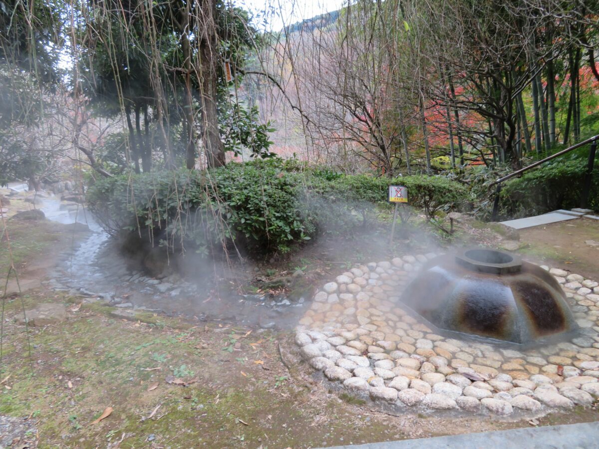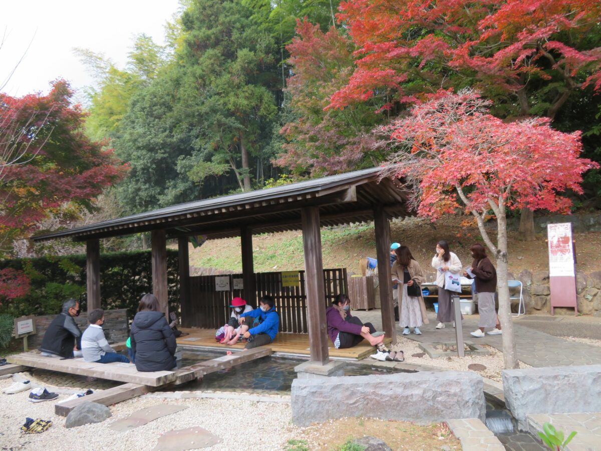 「熱海梅園もみじまつり」の開催期間中には足湯が解放されます。園の北端に温泉が湧き出、足湯施設が設けられます。疲れた足を温める温泉の上には紅葉が自然の屋根を作っています。