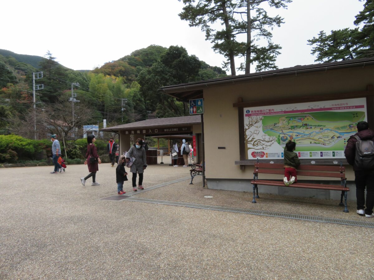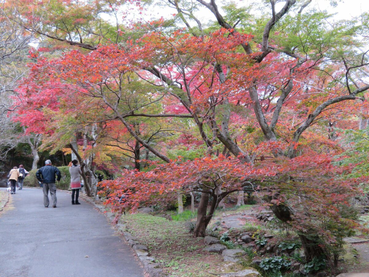 相模灘に面する熱海の温泉街の北部に造園された熱海梅園は、梅ばかりではなく紅葉の名所となっています。園内には梅の樹の間隙を埋めるように約380本のカエデ類が植栽さています。例年11月下旬から12月上旬には「熱海梅園もみじまつり」が開催されています。