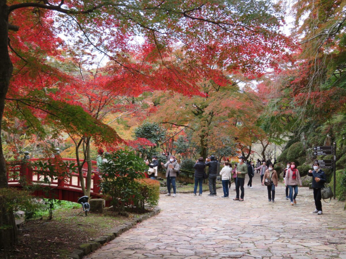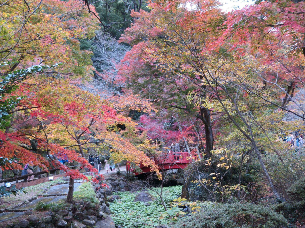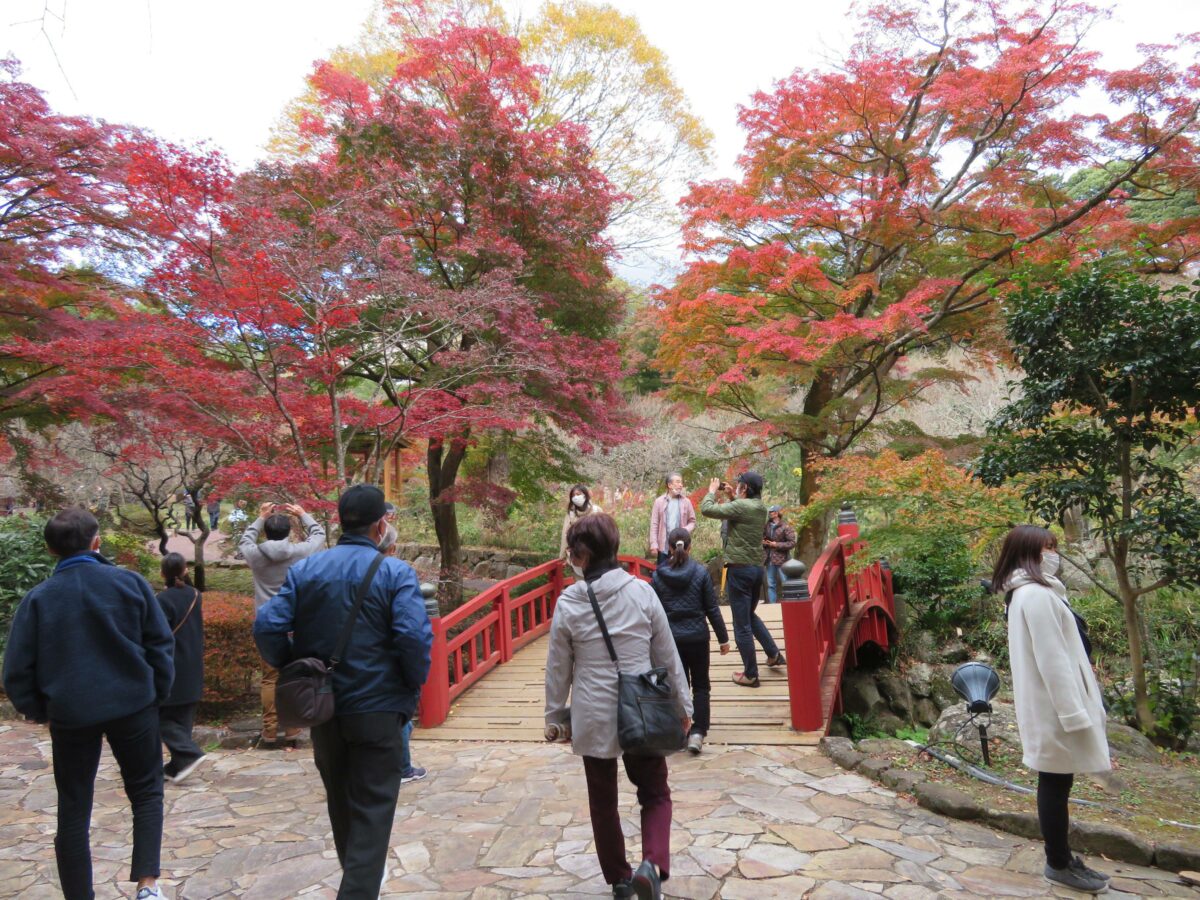 「日本で最も早咲きの梅」が育つ熱海梅園は、実は紅葉スポットでもあるのです。園内には約380本のカエデ類が植栽され、例年11月下旬から12月上旬にかけて梅園を紅葉が彩り、「熱海梅園もみじまつり」が開催されています。2021年は11月13日~12月5日の期間で行われています。