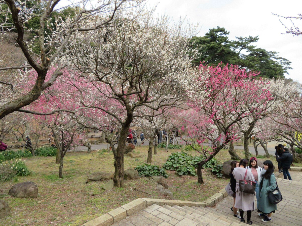 熱海梅園は、相模灘に面する静岡県熱海市の温泉街の北部に1886年に造園されました。