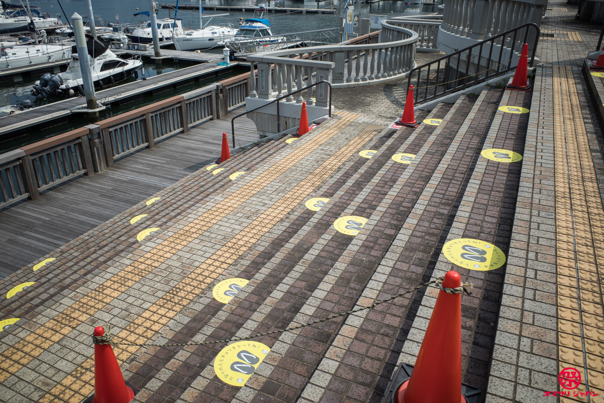 ステッカーを一定間隔で貼付することで密集を防ぐことを促す