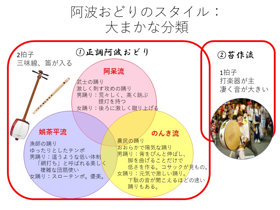 4.「阿呆流」「娯茶平流」「のんき流」。正調阿波おどりの三大流派