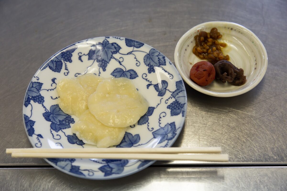 もろみと梅干、こしあんでいただきましたが、思ったよりコシがあって、確かにうどんの元祖という食感でした。