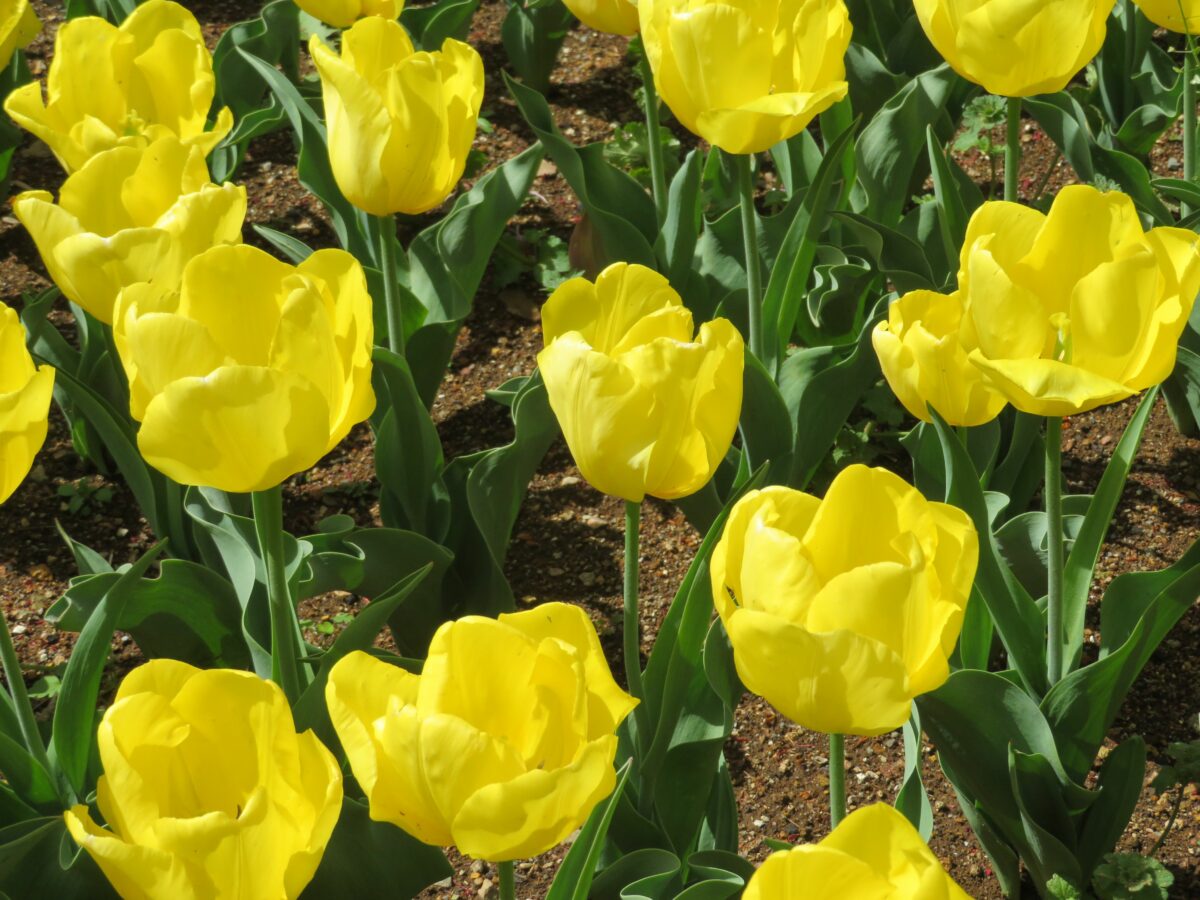 公園の南東部に設けられる品種ごとのチューリップの花壇