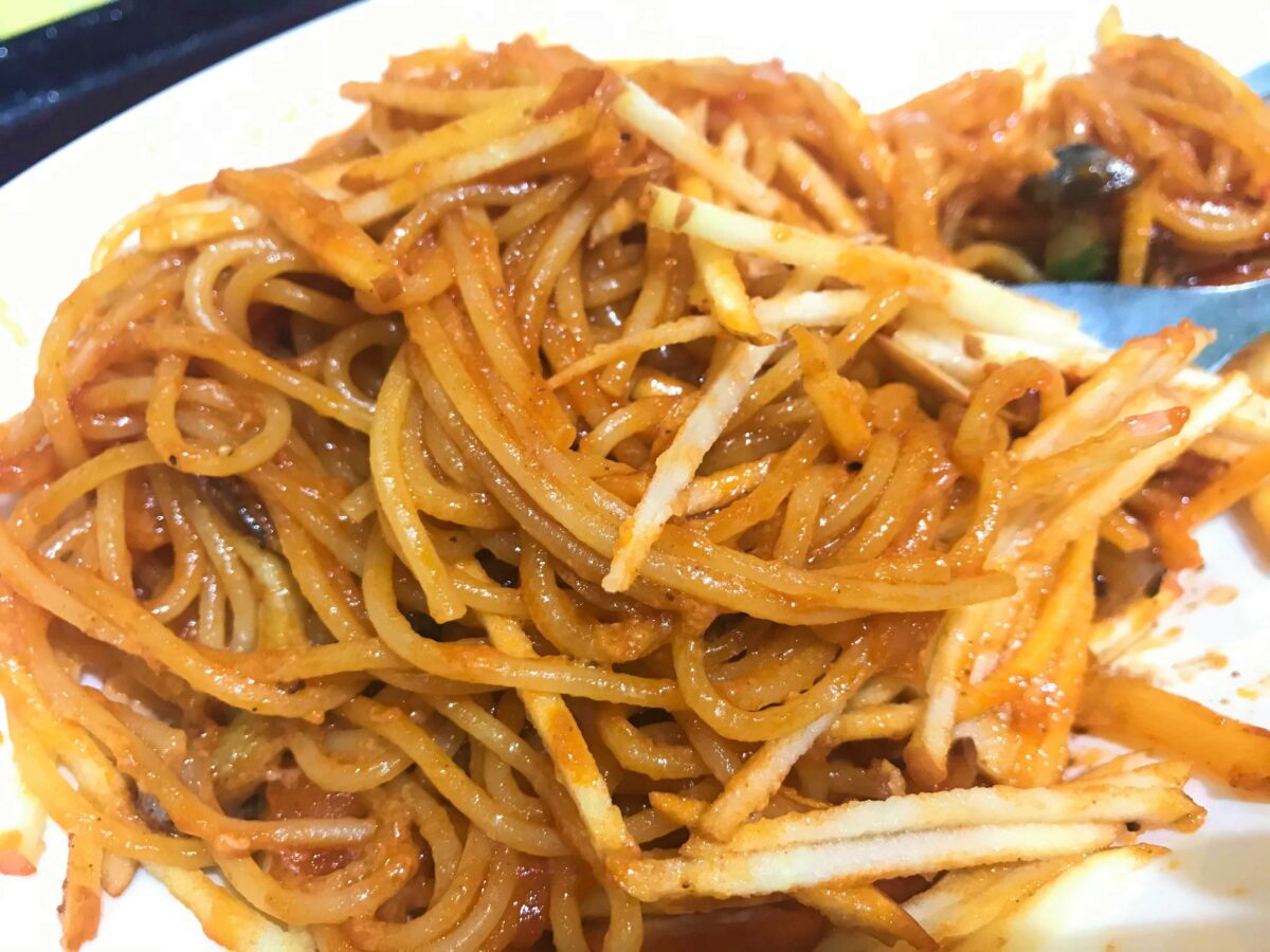 とっても美味しく、あっという間に完食してしまった「食事処 美里」の安曇野林檎ナポリタン。