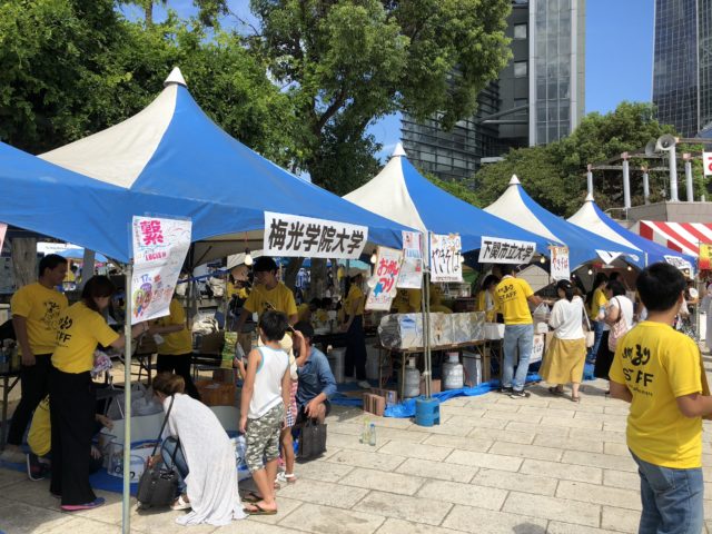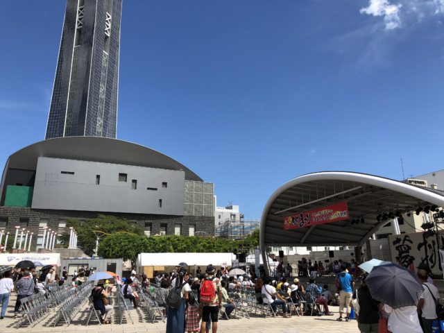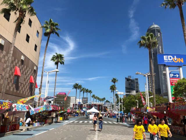 私たちが到着したのは午後1時。カラッと晴天の下関駅を出ると街はすでにお祭りムード一色です。駅にもたくさんのポスターやバナーが設置され、街をあげてのお祭りであることがすぐに分かります。とても綺麗に整備された下関の街にはお昼からたくさん催しが行われ、すでに大盛り上がり!