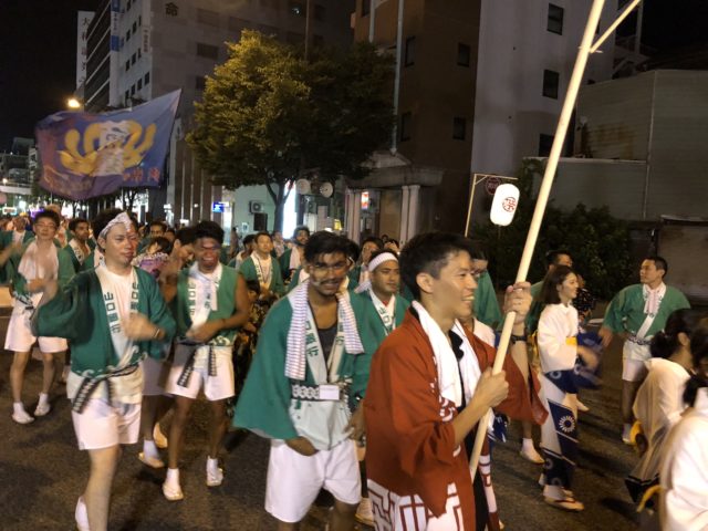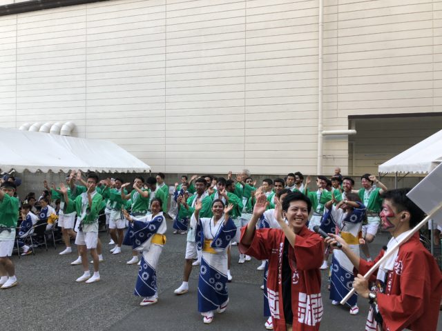 たくさんのイベントで盛り上がった後、いよいよメインの平家踊りへ!沿道からのたくさんの歓声を浴びながら、ベテラン社員も若手社員も外国人も、約1時間みっちり踊りきり、馬関まつりの盛り上げにひと役もふた役も買っていました!