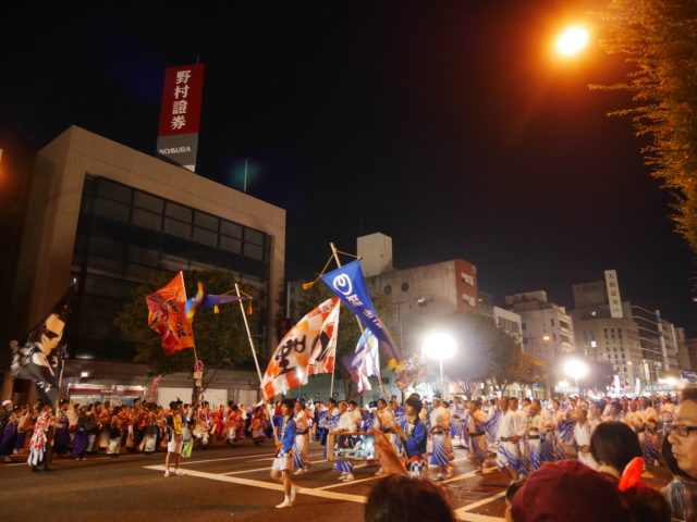 4,000人が一斉に平家踊りを踊る様はまさに圧巻!!動きも激しく、旗頭は10メートルはあろうかという大旗をぶんぶん振り回すので迫力も◎です!