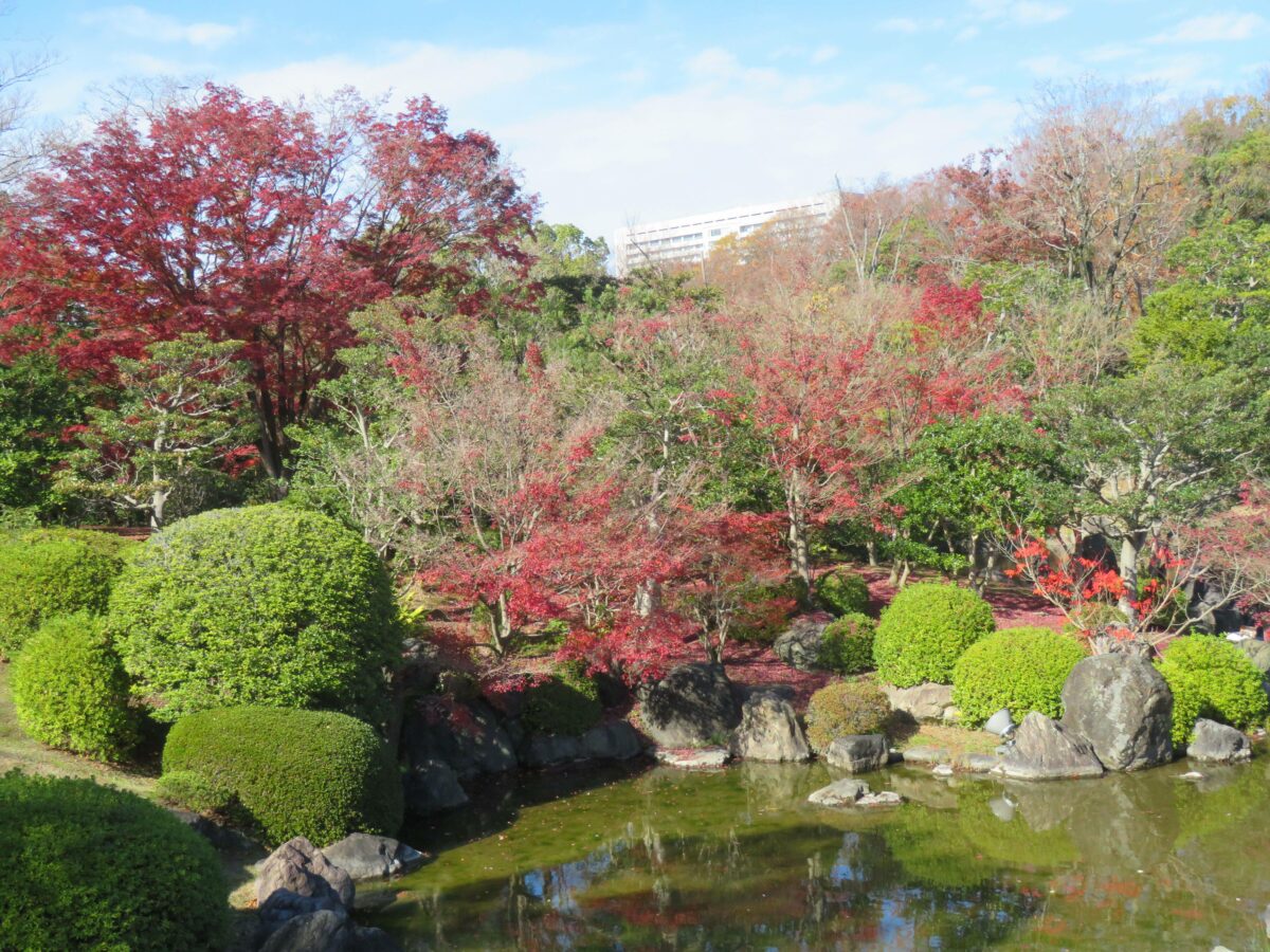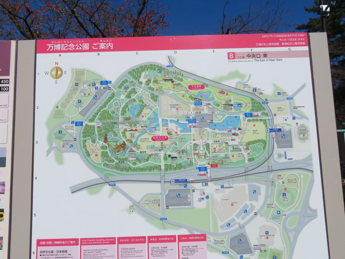 万博記念公園は約264ヘクタールの広大な敷地に多種多様の設備が整備されています。その中で紅葉が楽しめるのは、公園の南西部です。中央口からであれば太陽の塔に向かって左に進みます。