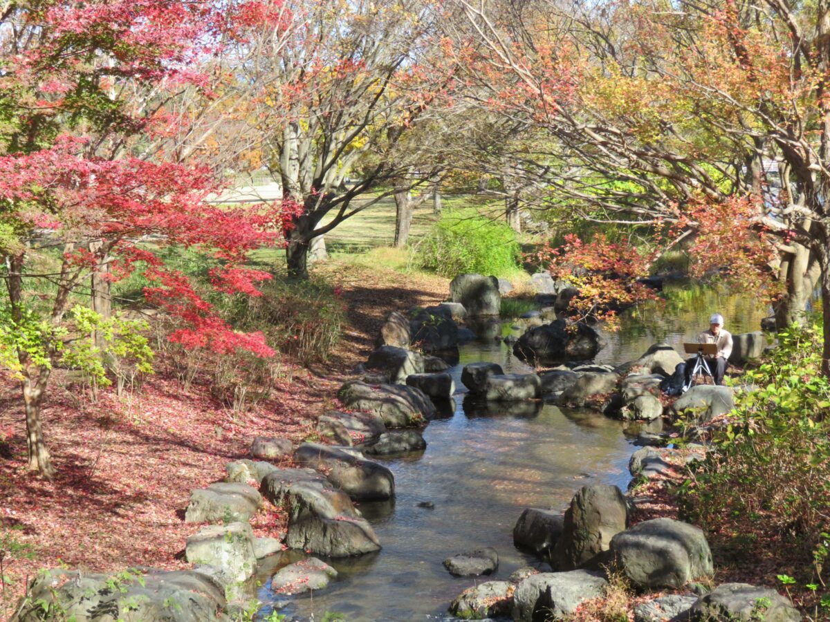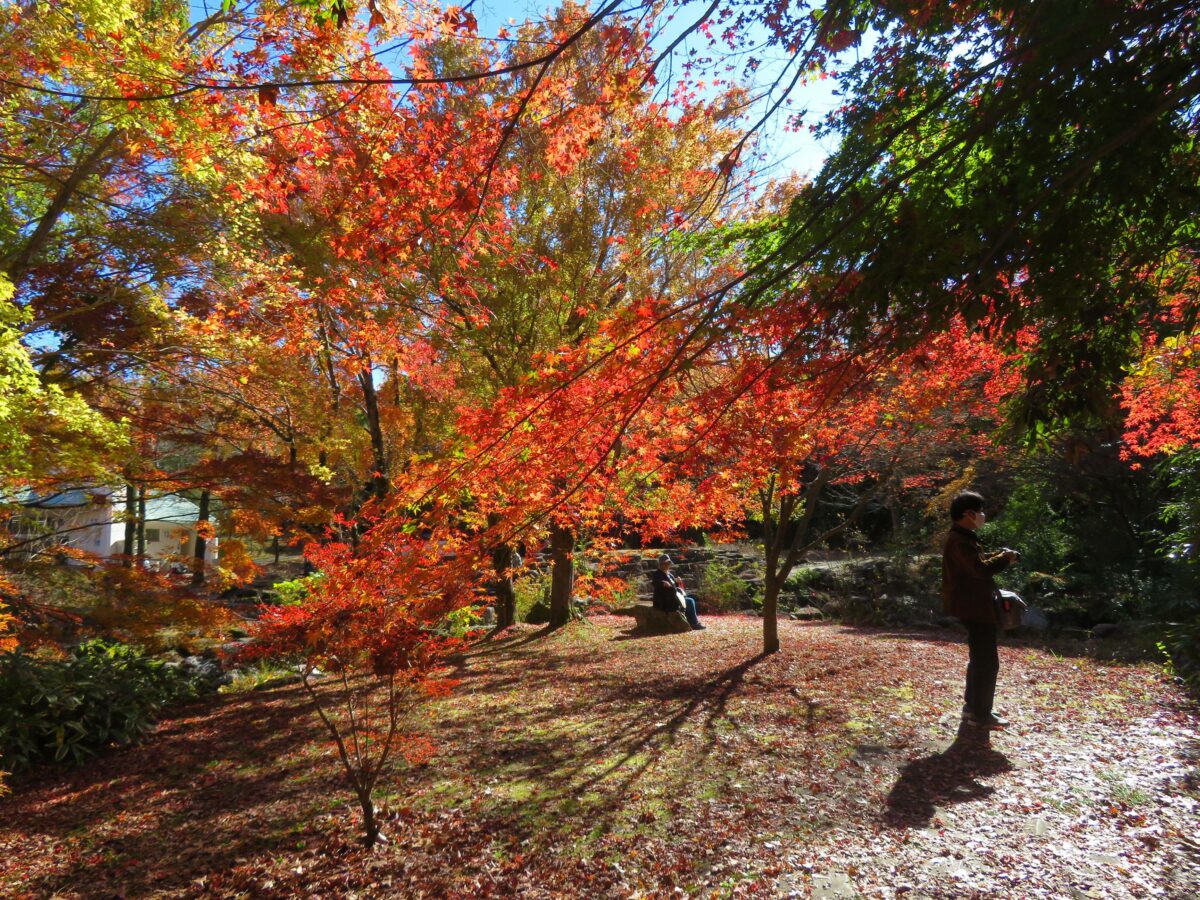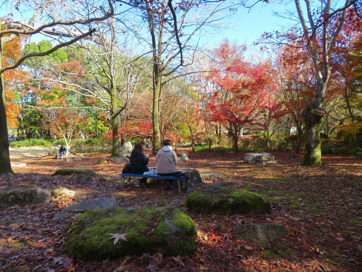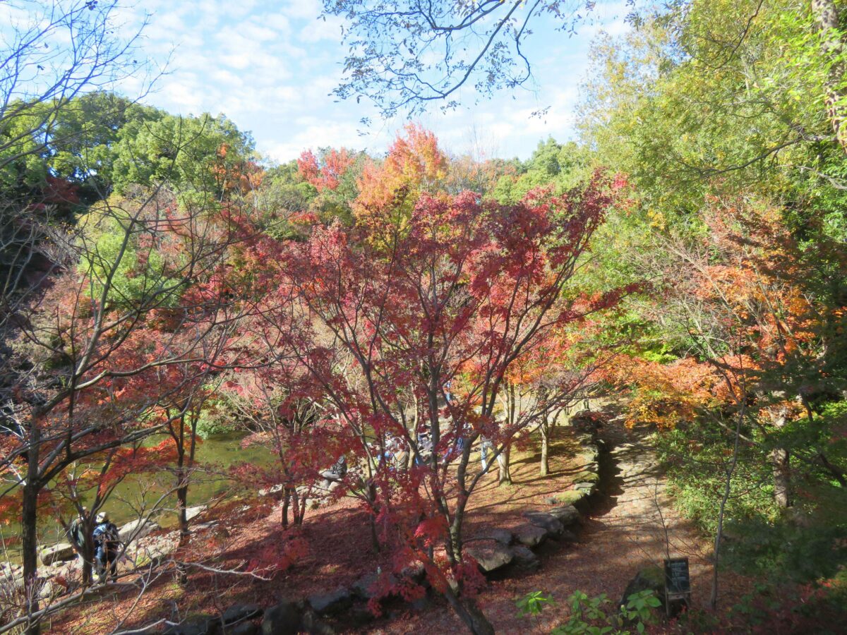 「万葉の里」からは進行方向を東に変え、「日本庭園」に向かいます。「日本庭園」の随所には秋の彩りが溢れ、11月下旬の土日祝日には夜間のライトアップが行われます。