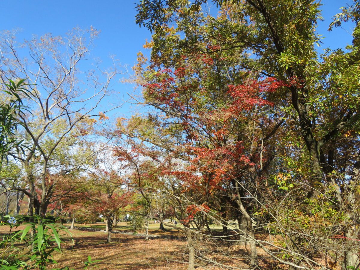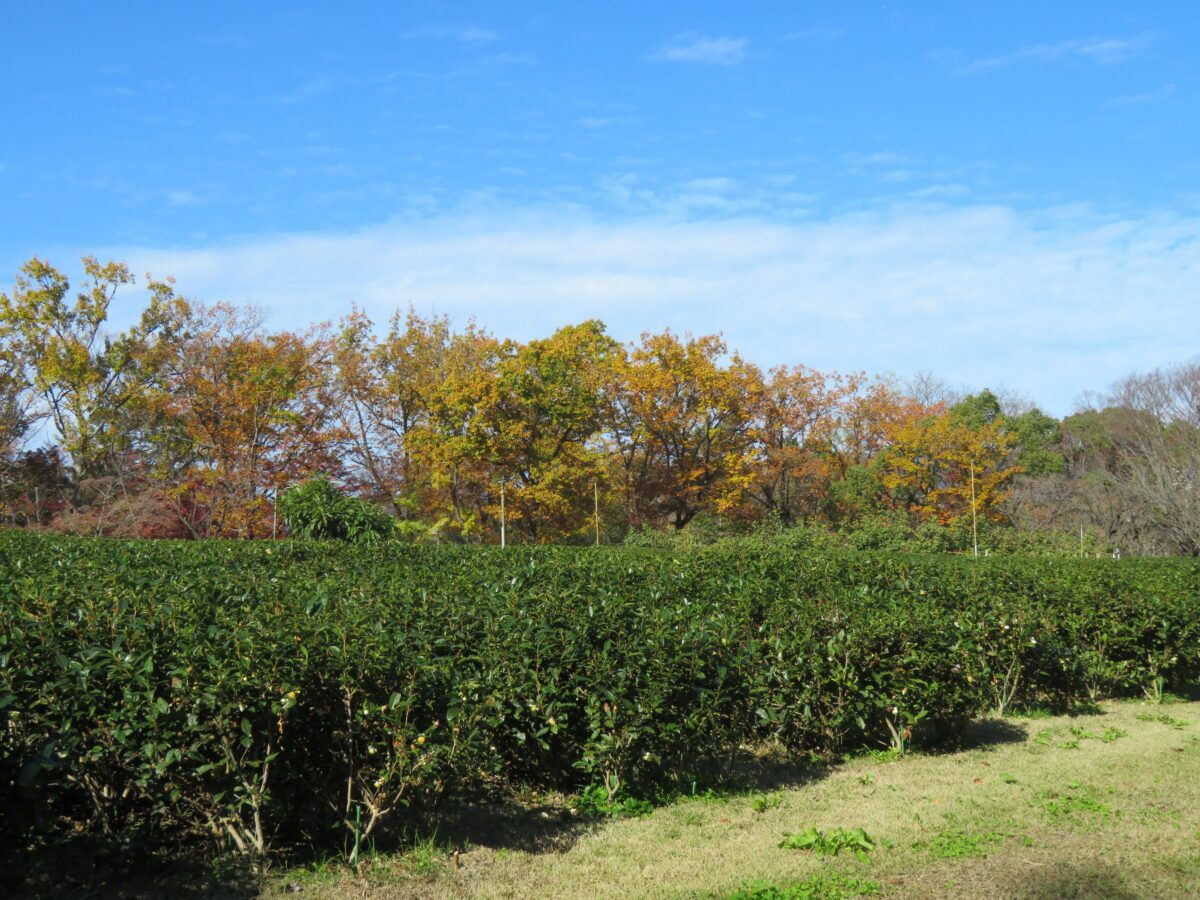 太陽の塔の西側の園路を進むと、「茶つみの里」、「けやきの丘」の周辺から秋の彩りが現れます。