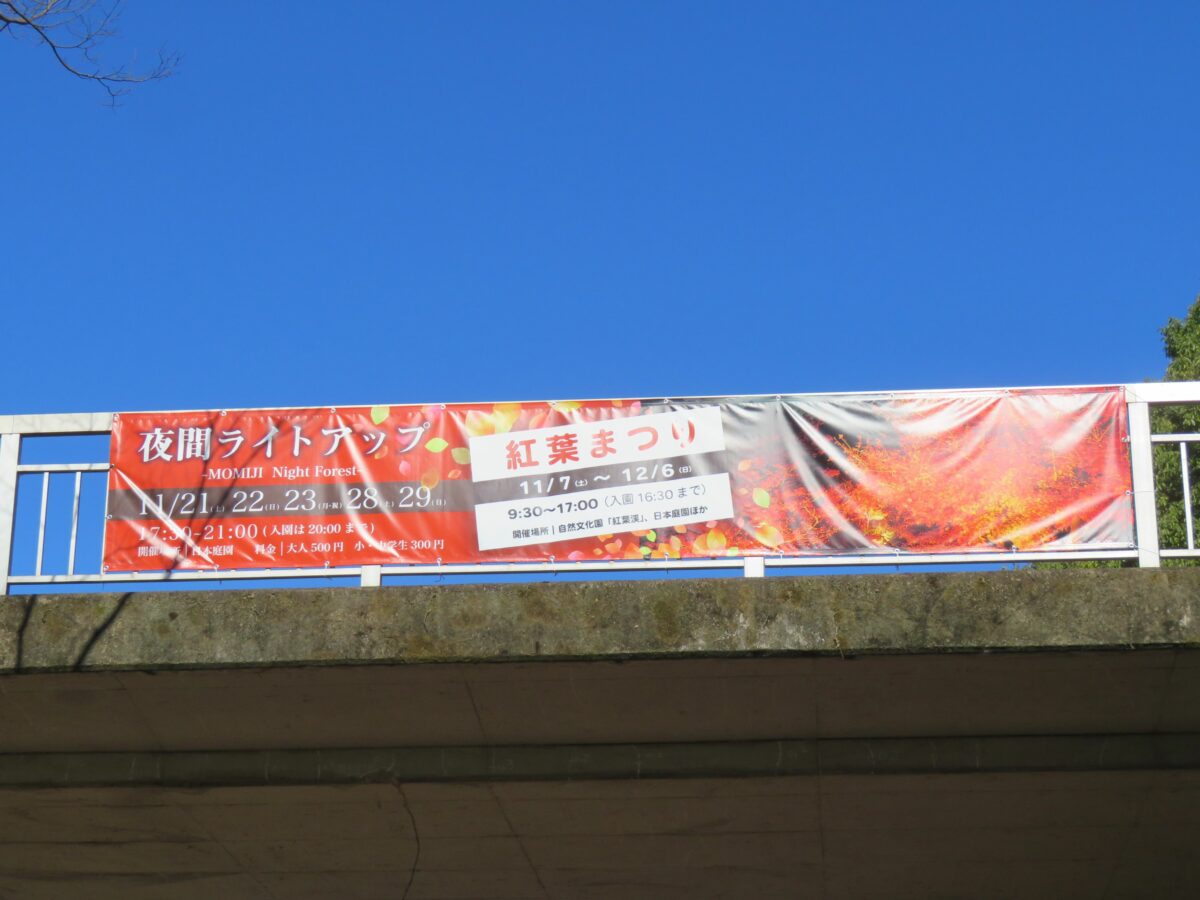 万博記念公園の園内で紅葉まつりの開催を知らせる案内幕