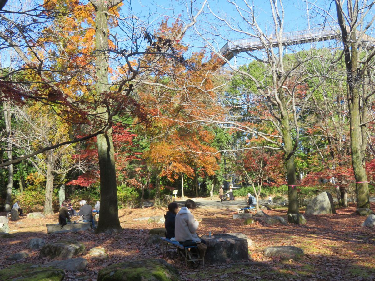「万葉の里」の上空には、空中散歩ができる遊歩道の「ソラード」が設けられ、様々な角度から紅葉を楽しむことができます。