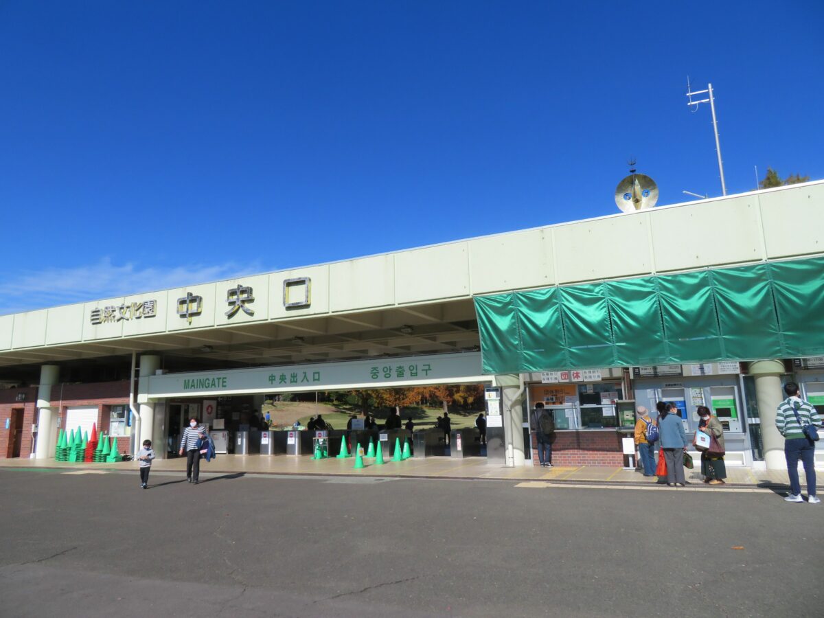 大阪モノレールの万博記念公園駅から歩道橋を渡れば中央口です。