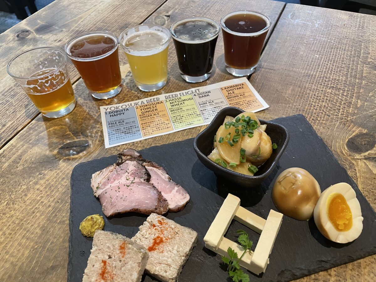 「横須賀ビールビアフライトセット」には、地元食材を使った、クラフトビールに合うおつまみがついています!